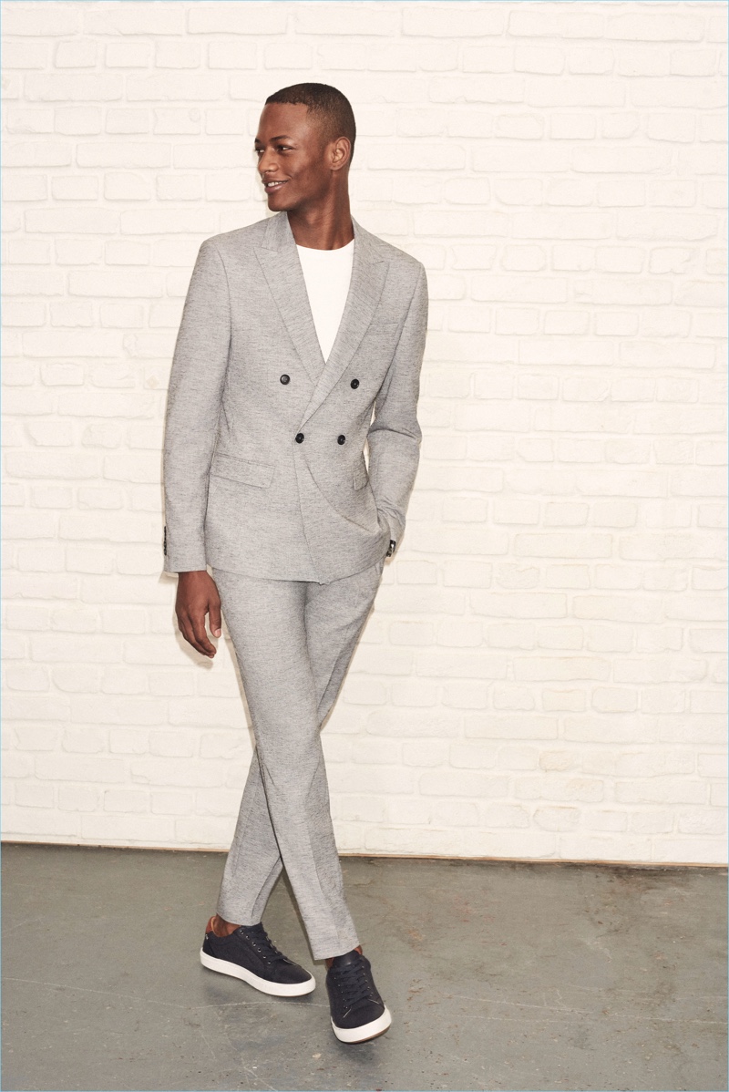 Models Lucas Cristino and Joel Meacock wear spring tailoring from River Island.