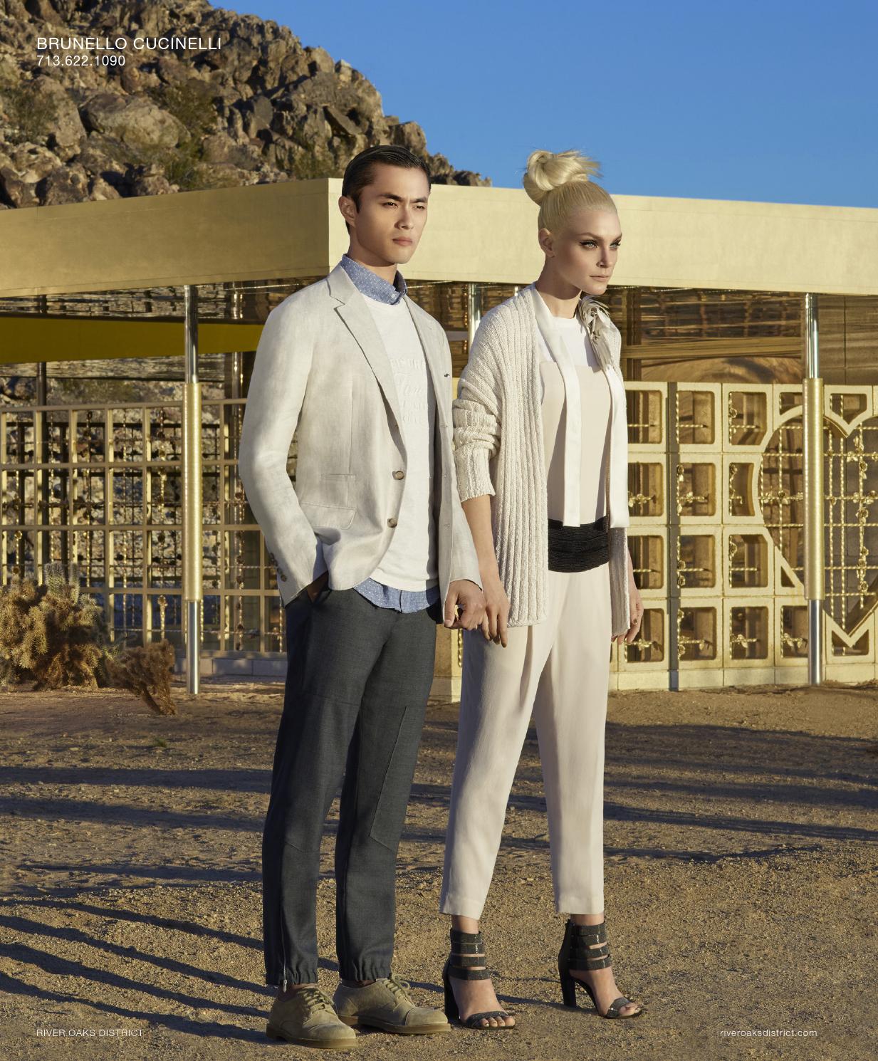Texas shopping destination River Oaks District enlists model Zhao Lei to star in its spring-summer 2016 catalogue. Zhao joins Jessica Stam for the designer outing, captured in the desert. Showcasing a variety of brands for the season, Zhao delivers casual and formal styles. Front and center, Zhao dons Brunello Cucinelli tailored separates, Vilebrequin swimwear, Kiton suiting and more.