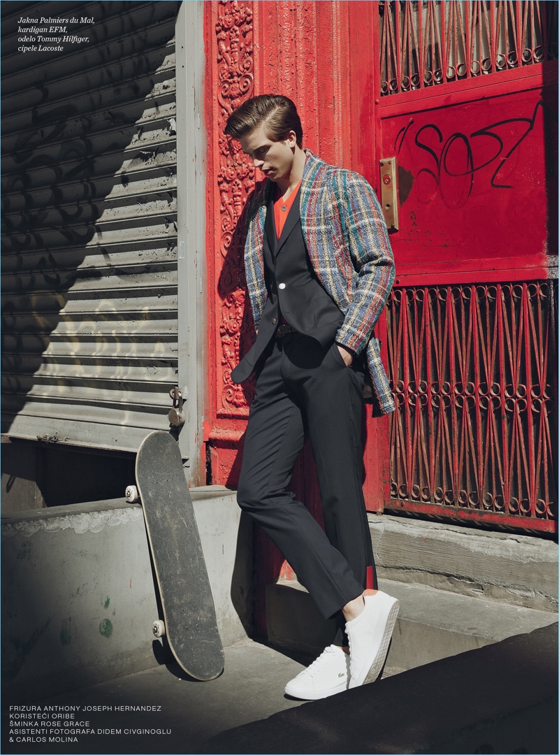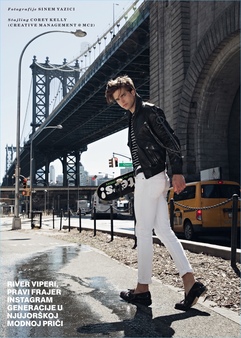 River Viiperi steps into the role of Cool Guy for the April 2017 cover story of Men’s Health Serbia. Photographer Sinem Yazici captures the digital sensation on the streets of New York. Wearing contemporary fashions, River links up with stylist Corey Kelly. Making quite the modern statement, River rocks brands such as L.B.M. 1911, Dirk Bikkembergs, and Eton.