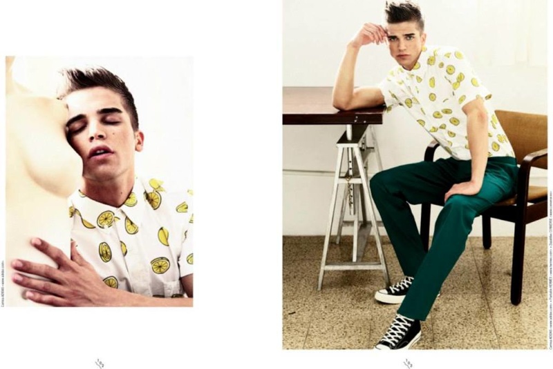 The Mlang Inspiration–Model River Viiperi covers the April issue of Spanish magazine Neo2, starring in a story with Felicia K. Photographed by Sebastian Troncoso, River hits the photo studio, finding his groove as he hits various poses. Styled by Sofía Mariño, fashions with a floral basis are the key focus.