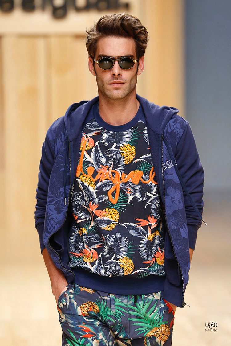 Desigual Spring/Summer 2015Desigual’s catwalk exploded with fun and joy as the label presented its spring/summer 2015 collection during 080 Barcelona Fashion. Models River Viiperi, Andres Velencoso Segura, Jon Kortajarena, Antonio Navas, Juan Betancourt and more hit the catwalk, beaming with an ear to ear grin. The season took a tropical turn, exploding with an exciting energy. Hawaiian prints, both subtle and loud, dressed shirts, shorts, pants and graphic t-shirts. Mixed in with everyday essentials such as distressed denim and plaid shirting, the tropical theme resulted in a cheerful spring outing.