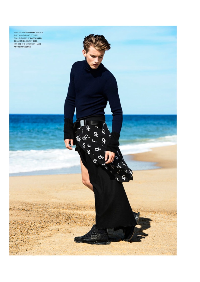 Fall’s a Beach–Hitting the beach for his latest shoot, American model RJ King appears in a story for Flaunt magazine lensed by photographer Alexander Neumann. Wearing coats from labels such as Louis Vuitton and Etro, RJ is styled by Christopher Campbell (Atelier Management). / Hair by John Ruidant. Makeup by Stefanie Willmann.