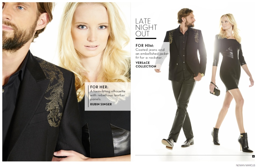 Power Couple Alert-Models RJ Rogenski and Maud Welzen come together for a fashion shoot for luxury retailer Neiman Marcus. Photographed by Nick Prendergast, the Neiman Marcus shoot features his ‘n’ her fashions for the most glamorous events. From the classic black eveningwear of BOSS by Hugo Boss to the extra punch of Versace Collection with its embellishments, RJ is an impressive vision of style. / Art direction by Carlos Lopez. Hair by Pieter Verhoeven. Makeup by Lisa Williams.