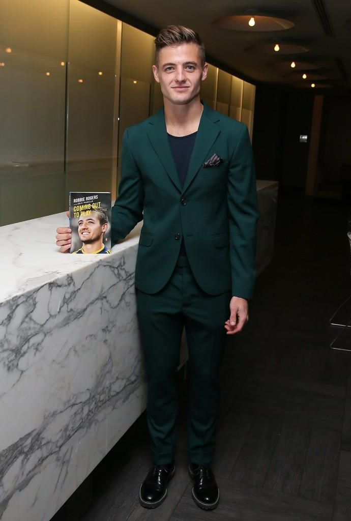 PinCelebrating the release of his memoir ‘Coming Out to Play’ on November 13th, soccer player Robbie Rogers was a refined vision in a green suit from Marni. Rogers, also recently celebrated the extension of his multi-year contract with Los Angeles Galaxy.