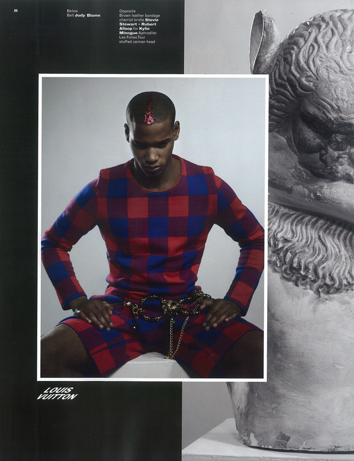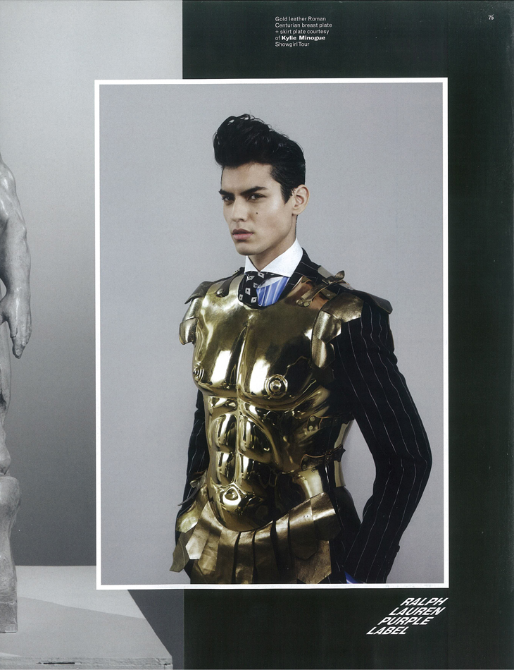 Warrior Legends–Select models Robert Monteiro, Allen Taylor, Paolo Gallardo, Omari Dixon and Sacha M’Baye channel strength and intensity while showcasing the spring/summer 2012 collections shot by photographer Jamie Morgan for Arena Homme+. Styled by Barry Kamen, the models suit up for battle in this gladiator-inspired spread.