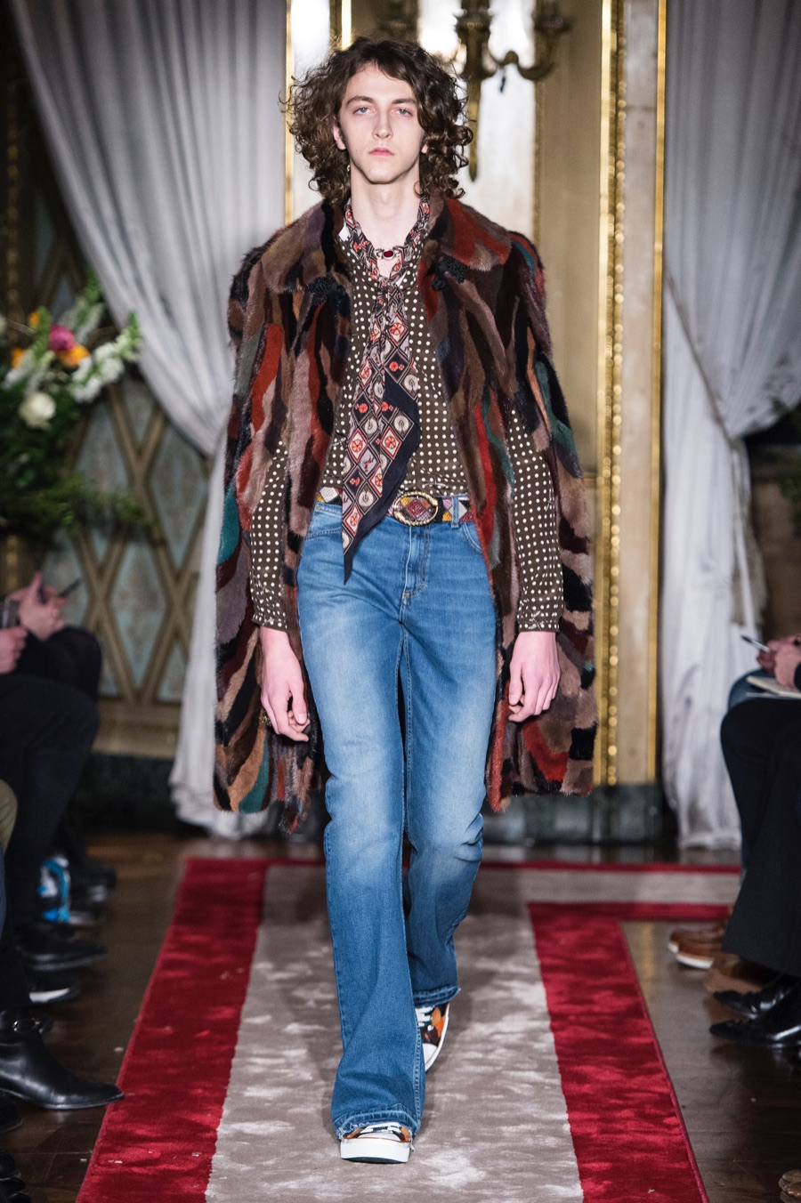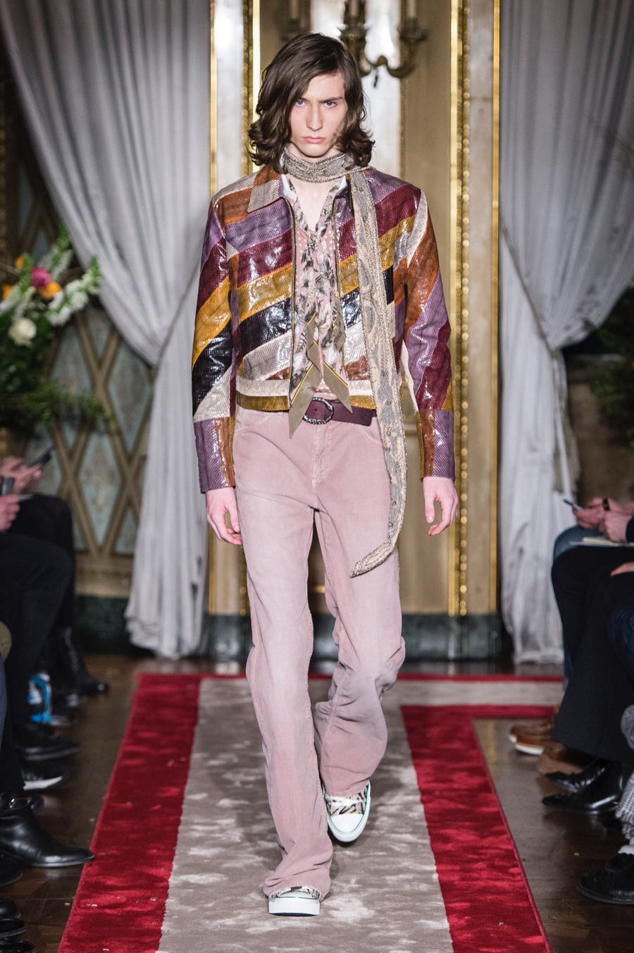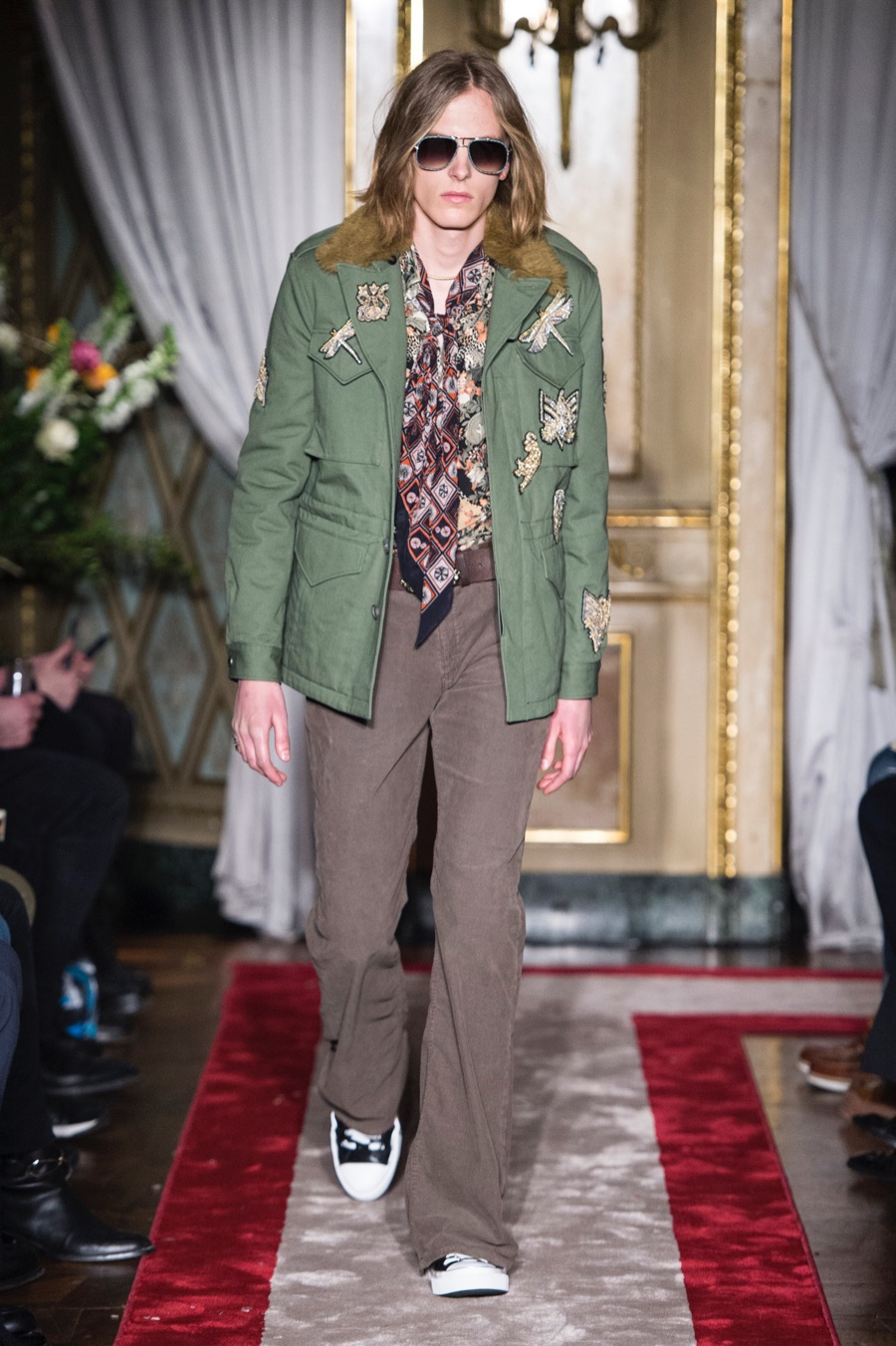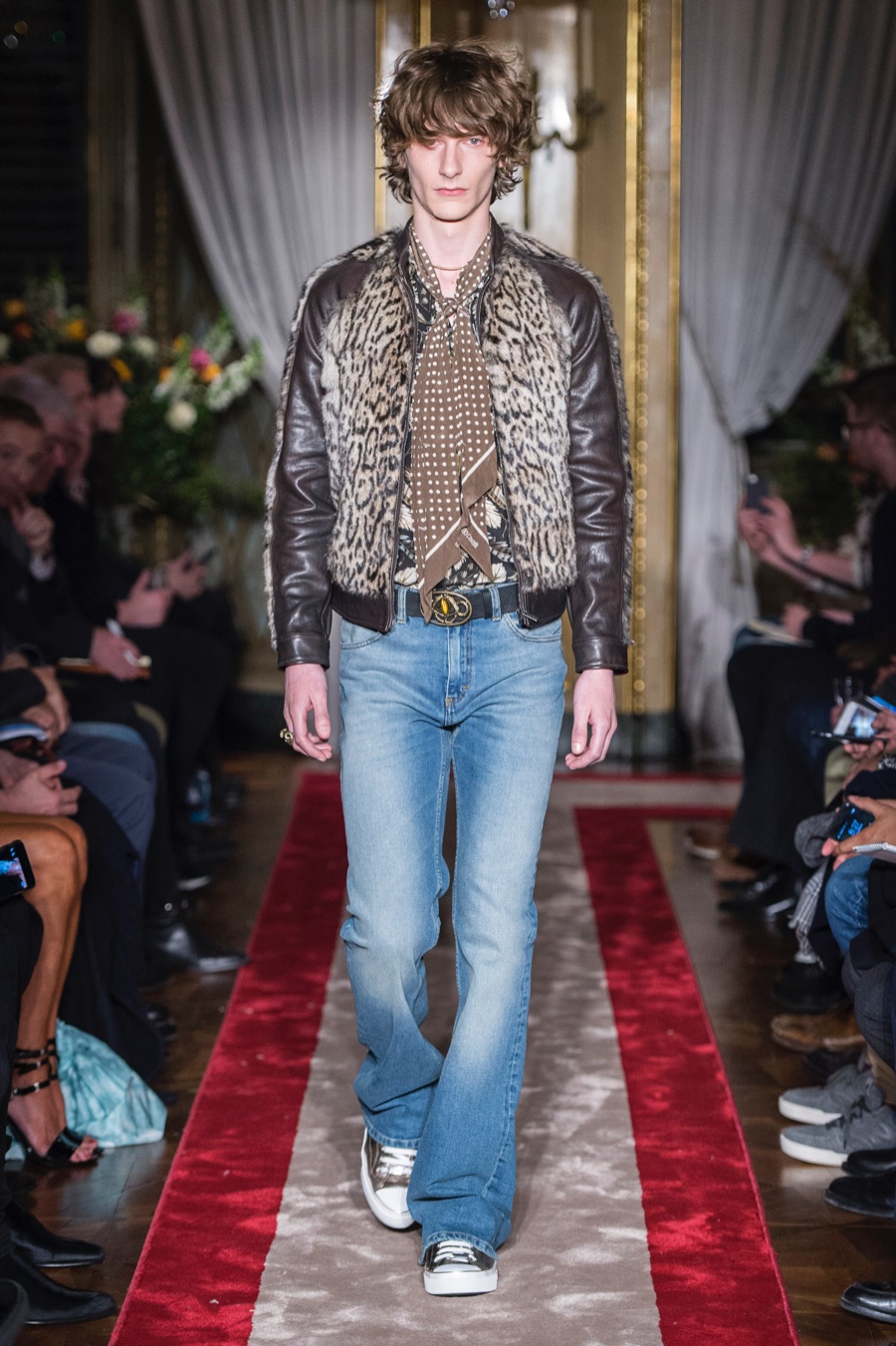 Entitled Real Opulence, Roberto Cavalli’s fall-winter 2016 collection marked the debut men’s outing of new creative director Peter Dundas. Taking aim at a wardrobe ideal for the twenty-first century dandy, Dundas referenced the 1960s and 70s for the Italian fashion house’s latest collection. Interested in the Cavalli man’s inner rock icon, Dundas infused the lineup with a sensual, sexual and decadent style befitting of music legends such as Mick Jagger, Keith Richards, Jimmy Page and George Harrison.