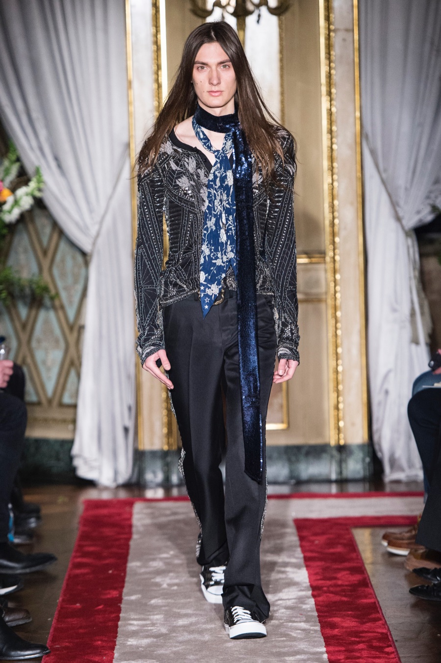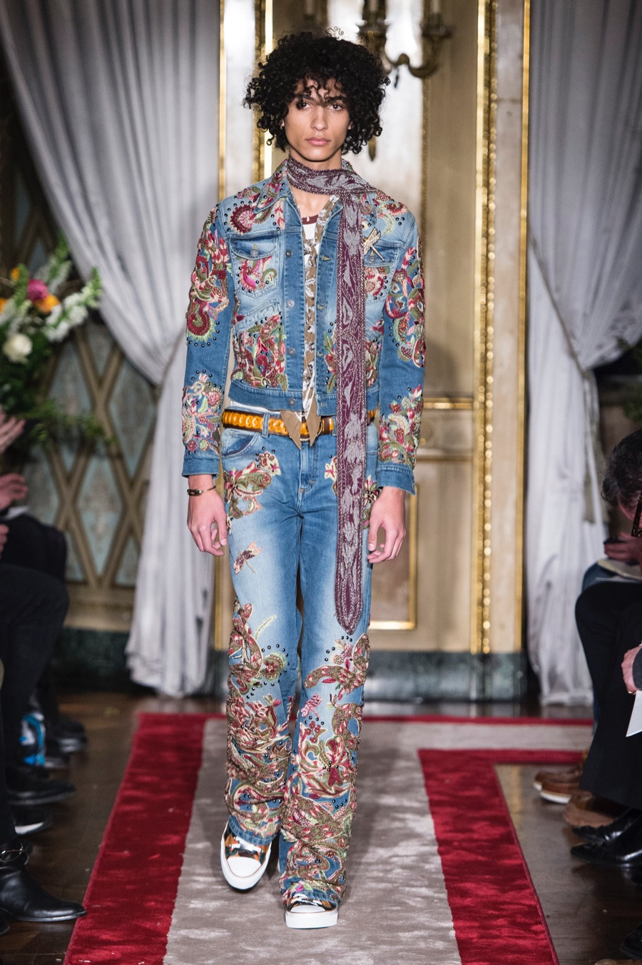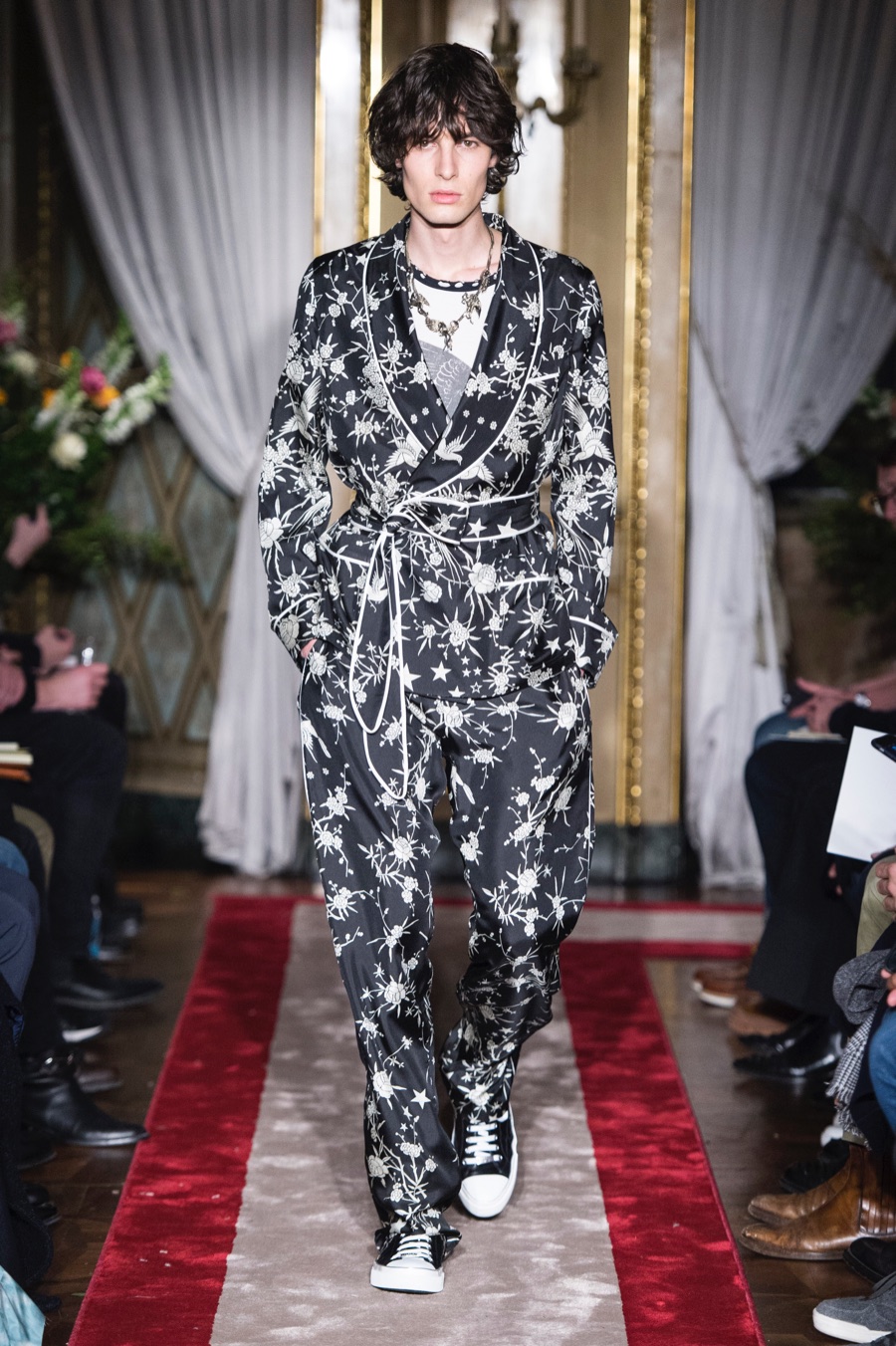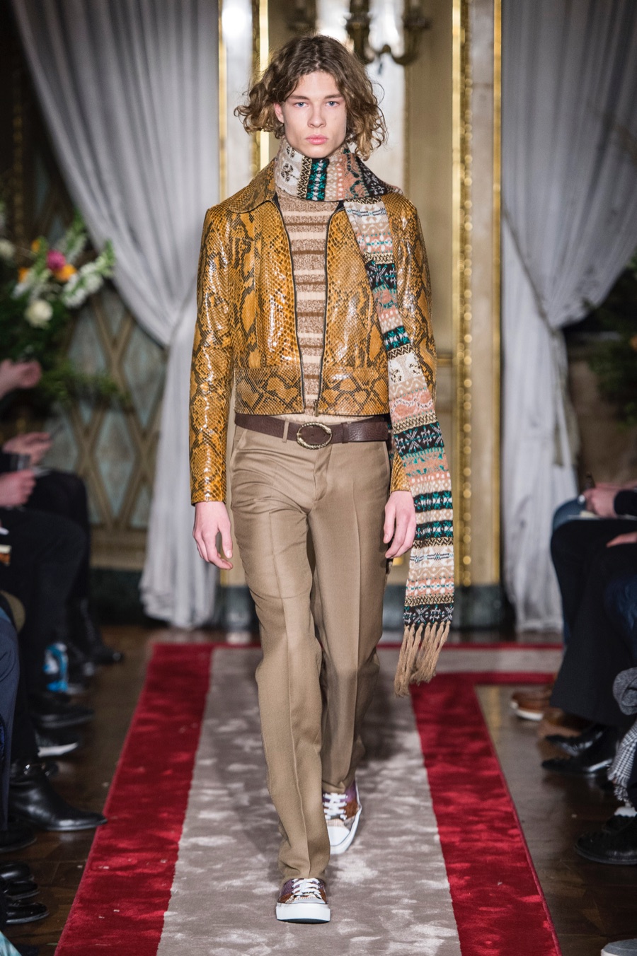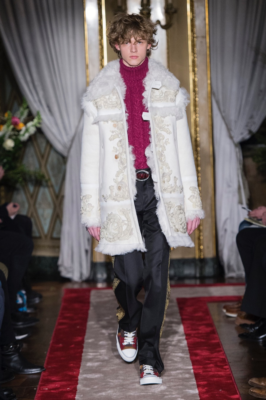 Entitled Real Opulence, Roberto Cavalli’s fall-winter 2016 collection marked the debut men’s outing of new creative director Peter Dundas. Taking aim at a wardrobe ideal for the twenty-first century dandy, Dundas referenced the 1960s and 70s for the Italian fashion house’s latest collection. Interested in the Cavalli man’s inner rock icon, Dundas infused the lineup with a sensual, sexual and decadent style befitting of music legends such as Mick Jagger, Keith Richards, Jimmy Page and George Harrison.