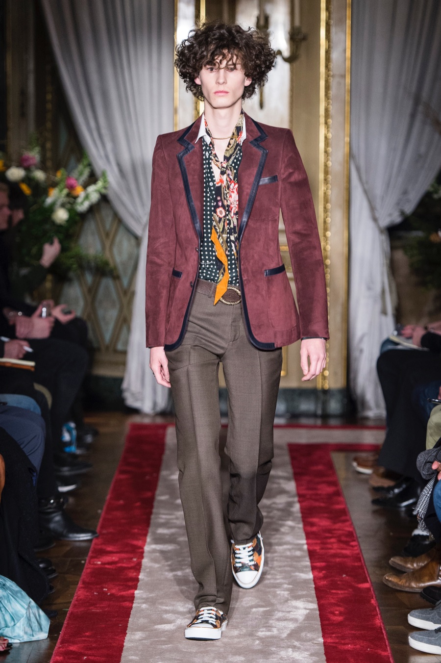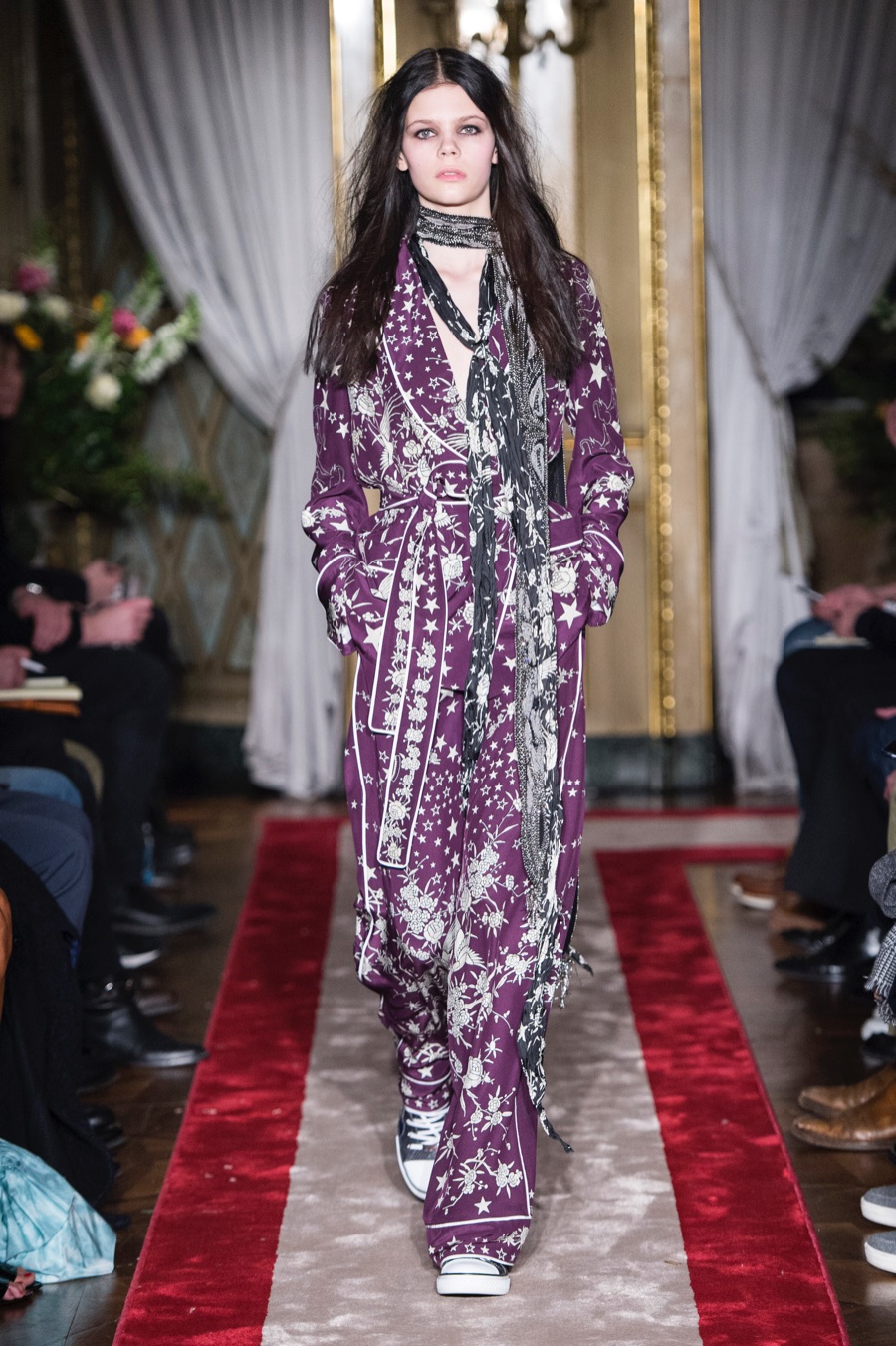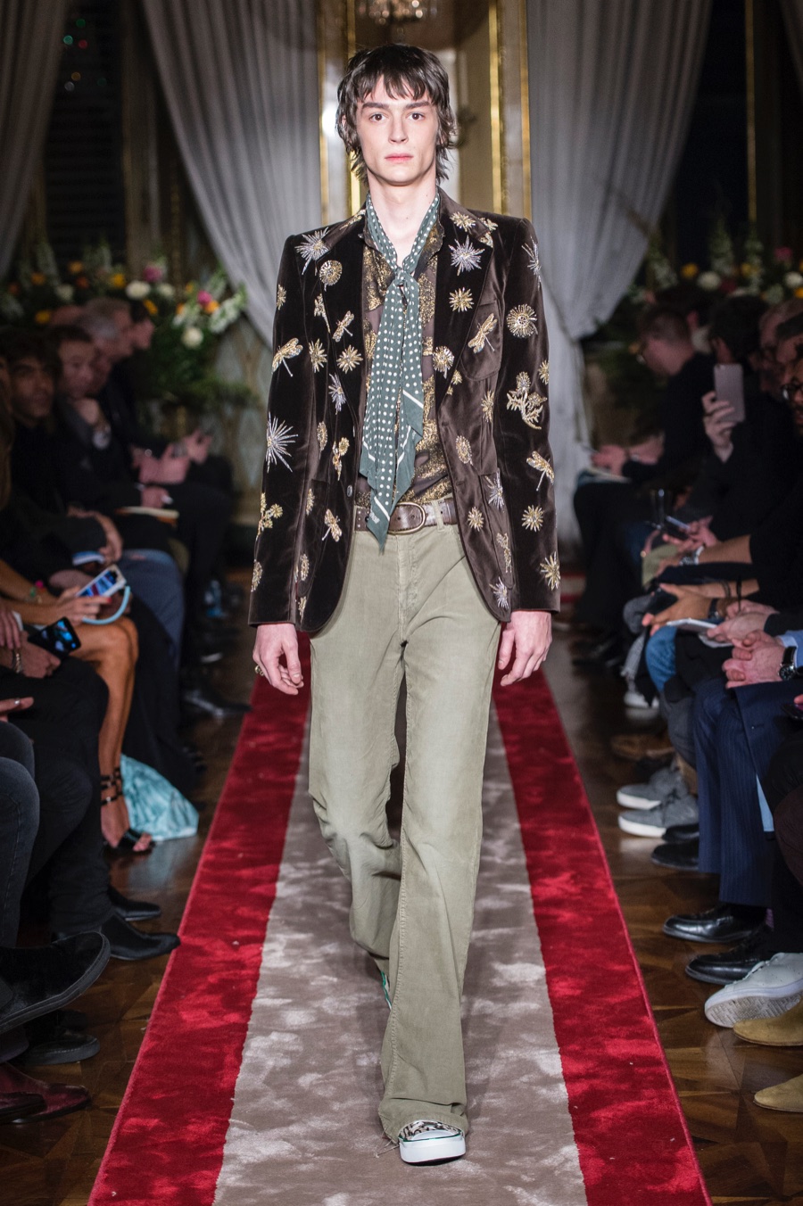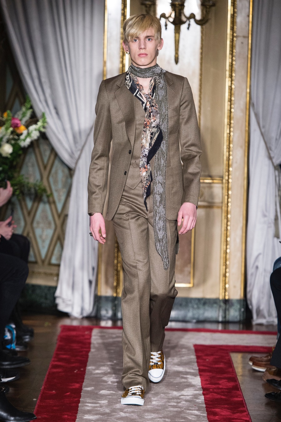 Entitled Real Opulence, Roberto Cavalli’s fall-winter 2016 collection marked the debut men’s outing of new creative director Peter Dundas. Taking aim at a wardrobe ideal for the twenty-first century dandy, Dundas referenced the 1960s and 70s for the Italian fashion house’s latest collection. Interested in the Cavalli man’s inner rock icon, Dundas infused the lineup with a sensual, sexual and decadent style befitting of music legends such as Mick Jagger, Keith Richards, Jimmy Page and George Harrison.