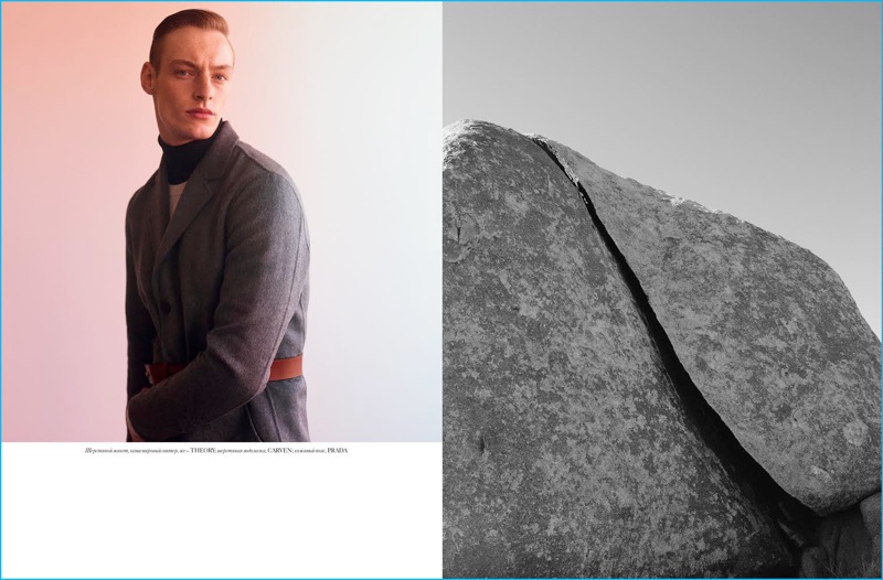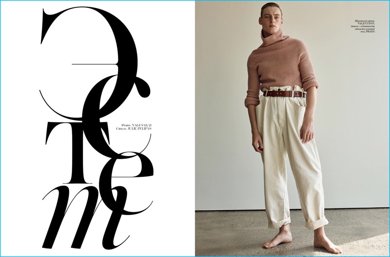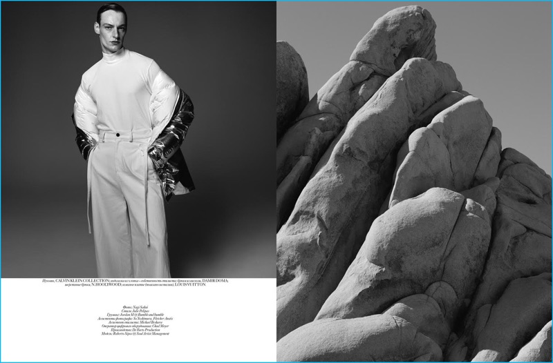 Model Roberto Sipos is an arresting vision as he covers the October 2016 issue of Vogue Ukraine Man. Tackling a sophisticated stance on editorial looks, Roberto is styled by Julie Pelipas. Striking up a working chemistry with photographer Nagi Sakai, Roberto is stunning as he dons belted outfits for a chic autumn. Delivering quite the designer outlook, Roberto is cinched and layered in great pieces from the likes of Valentino, Louis Vuitton, Prada, and Carven. / Hair by Jordan M. (Susan Price). Makeup by Eric Polito (Art Dept). Casting by Megan McCluskie Casting. Production by Aces & Vices.
