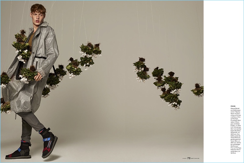 Starring in an editorial for Men's Health Germany Best Fashion, Roberto Sipos rocks a Prada spring outfit.Pin
