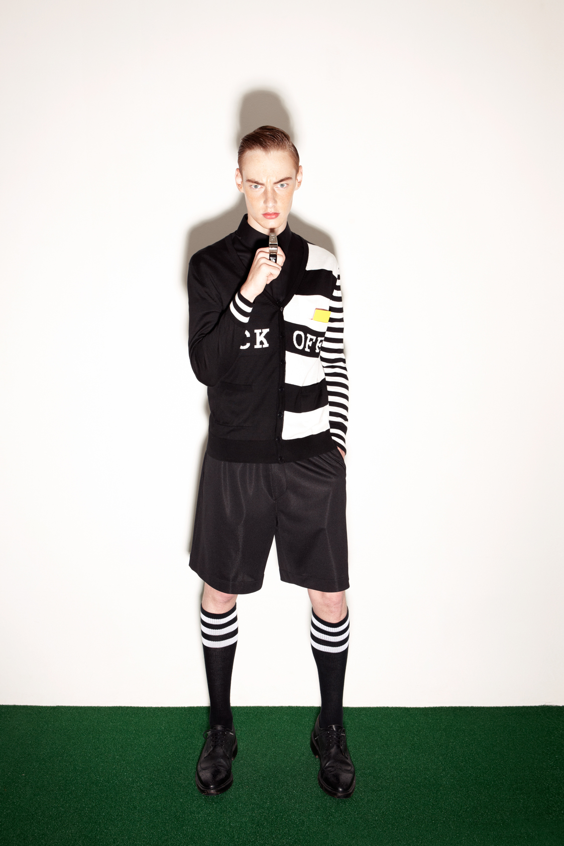 Let’s Play!–Enlisted by Korean fashion designer Munsoo Kwon to unveil the brand’s spring/summer 2014 collection, model Roberto Sipos enters the studio to appear before the lens of Bora Lee, to shoot Munsoo Kwon’s latest lookbook. With a collection that looks to the game of soccer for its main inspiration, Munsoo Kwon reinterprets the strength of the sport with a series of modern silhouettes, embellished with unique details and elements that come straight off the uniforms of soccer teams. The attitude of soccer is also used by the designer as a metaphor of life, with the constant achievement of new goals and a sense of collaborative spirit. Munsoo Kwon’s spring/summer 2014 offering isn’t only about sportswear inspired pieces, but also touches on new textures, graphic prints, interesting proportions and impeccable cuts, that define a sense of style, playing with different aesthetics and inspirations.
