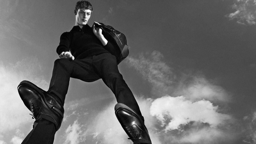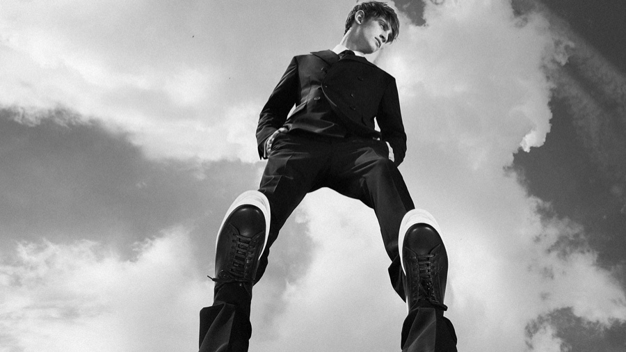 BRAGA+FEDERICO dreams up brilliant art direction for a new fashion editorial from Church’s. Highlighting the label’s footwear, models Erik van Gils, Roberto Sipos, Hugh Laughton Scott and Charlie Ayres-Taylor are captured from a sharp angle by photographer Paolo Barbi. Posing with a backdrop of the sky, the models are pictured in black & white images, showing Church’s sneakers and dress shoes. / Hair by Luca Cianciolo.