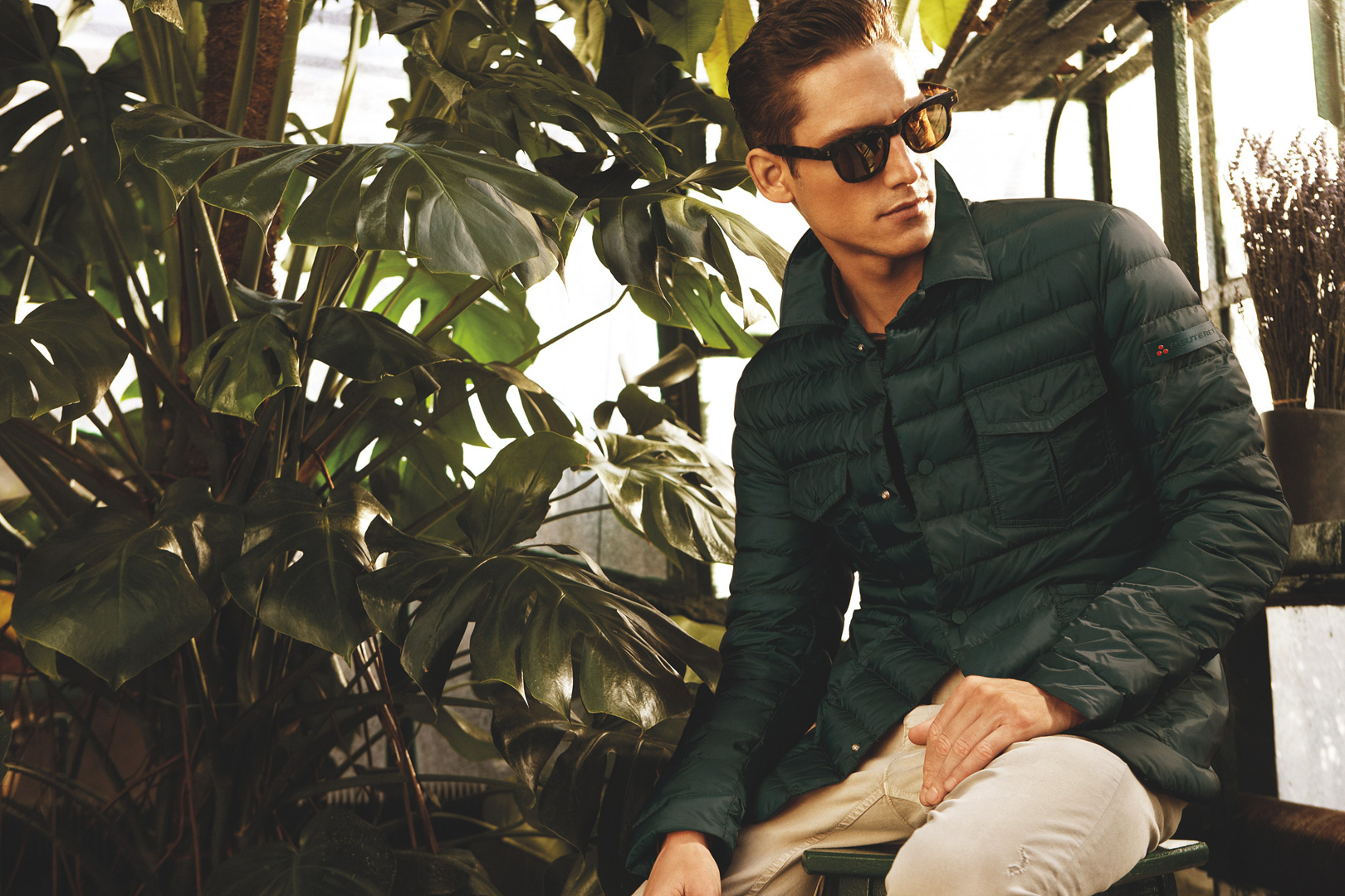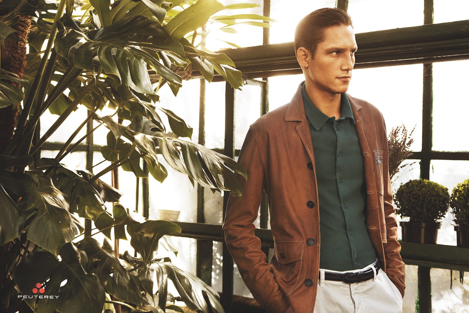 Timeless Sportswear–The starting point of Peuterey’s style is surely the sporty jacket, revisited and updated, season after season, thanks to new textures, fabrics and colors. Spring 2013 definitely follows this course, unveiling a selection of versatile pieces that mix functionality with a more sophisticated concept of easy luxury. Incorporating this concept into images, the label enlists Kult model Roch Barbot, who appears in the brand’s spring/summer 2013 advertisements. Captured inside a greenhouse, surrounded by pink orchids and luxuriant plants, Roch is a vision of modern style in a palette of colors that blends neutral tones with warm browns, rich blues and deep green hues, that highlight Peuterey’s travel-oriented silhouettes.