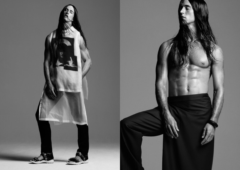 National Treasure–Rodrigo Calazans dares to go bare in the latest edition of culture magazine, Made in Brazil. Stylist Nick Nelson outfits the Brazilian model in striking spring ensembles from Givenchy, Prada and more, but photographer Greg Vaughan also captures a racier side of Rodrigo for the provocative publication. / Hair by Fernando Torrent.