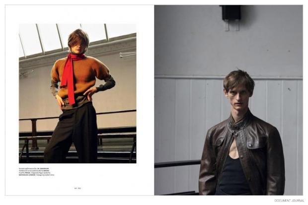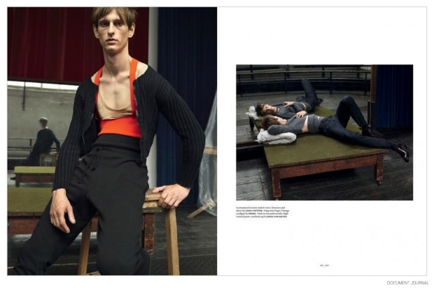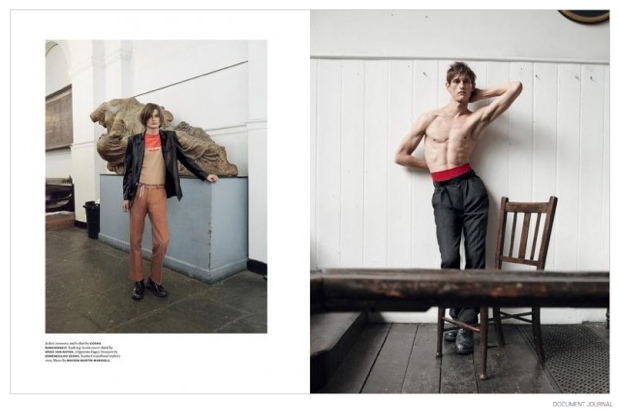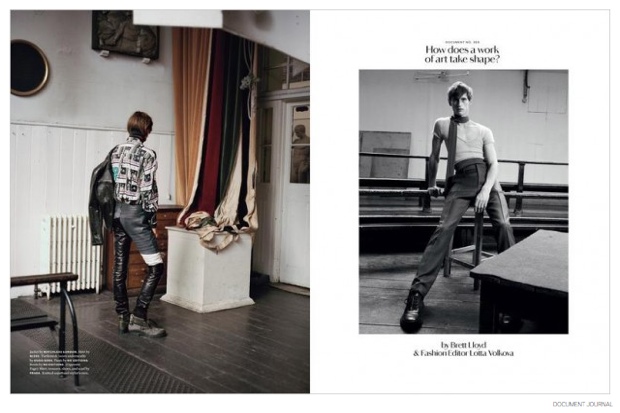 How does a work of art take shape? Donning elegant fall pieces from luxury fashion labels such as Italian brand Prada, models Rogier Bosschaart and Haavard Kleppe take to the pages of Document Journal with a moving story lensed by Brett Lloyd. Capturing arousing sentiments, Lloyd collaborates with stylist Lotta Volkova Adam. / Hair by Louis Ghewy. Makeup by Thomas De Kluyver.