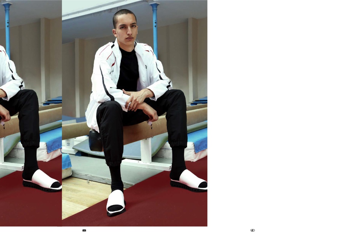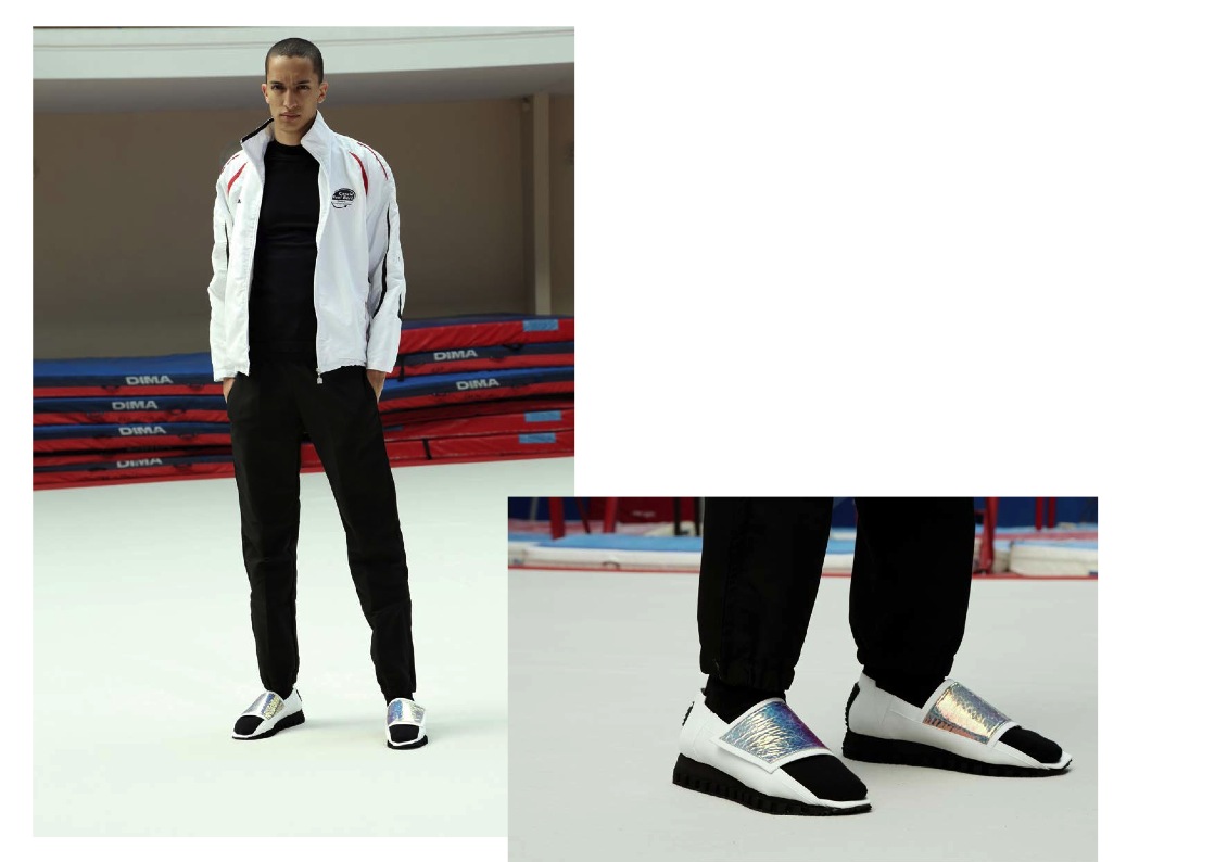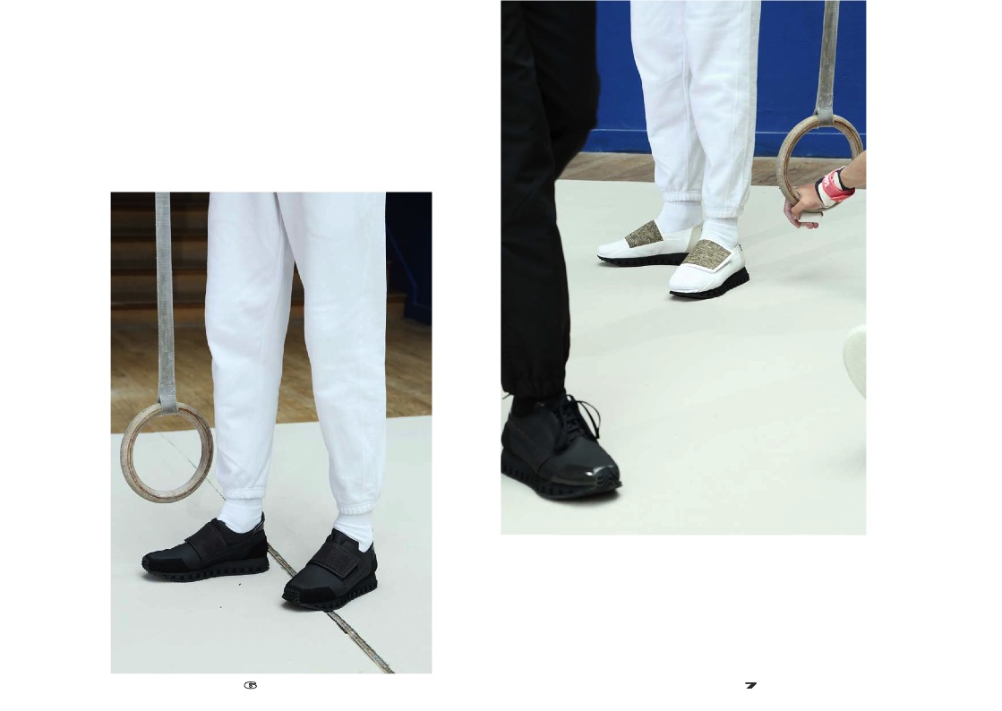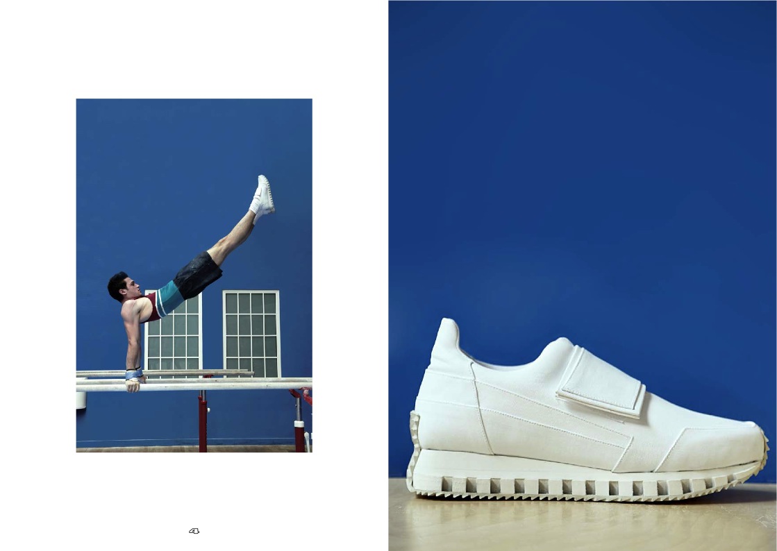 ROMBAUT Hits The Mark–Belgian designer Mats Rombaut looks to gymnastics for inspiration in his new line of footwear for spring/summer 2015. This athletic collection keeps the look and feel of a traditional sports shoe at its core, building upon that foundation with high-fashion embellishments in-keeping with the well-established minimalist style that ROMBAUT employs so well. A shoot by photographer Alice Rosati is accompanied by a high-intensity video clip showing the shoes being worn during a gymnastics routine. Models Luca Fixy, Daytona Williams and Grégoire Le Goupil lend their talents to the entertaining outing.