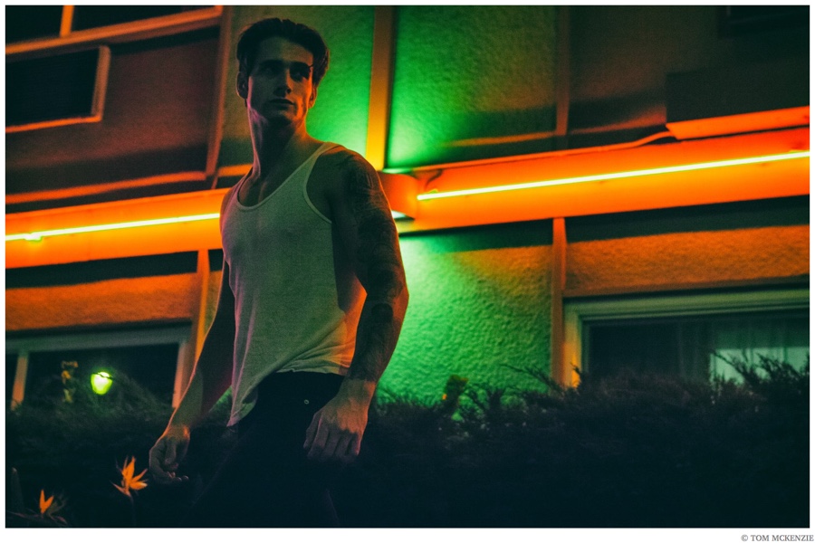 Starring in a striking new shoot, British export Ross Hindmarch connects with photographer Tom McKenzie in Los Angeles, California for a moody outing. Captured on location in Chinatown, the Two Management model is in top form as he offers a certain grit and unexpected charm in near candid images.