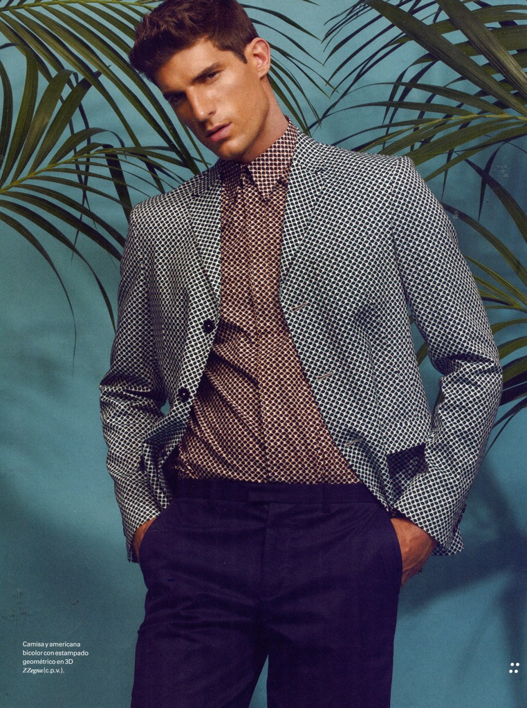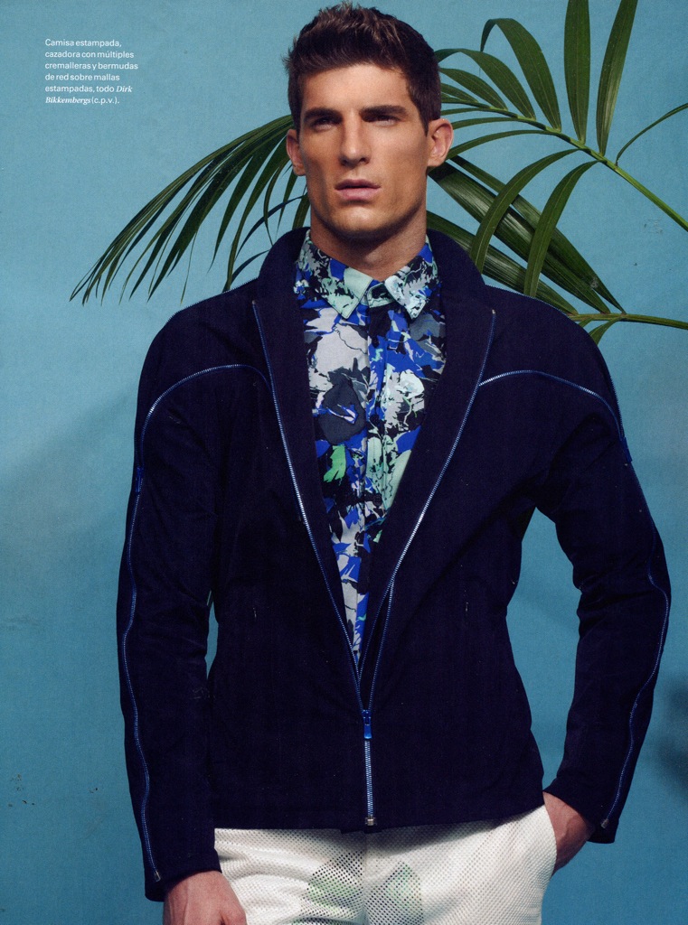 Summer Prints–Focusing in upon one of the season’s most energetic trends, Spanish Men’s Health – Best Fashion spins a story of vibrant graphics and lush colors, featuring model Ryan Barrett of Sight Management. Lensed by Edu García, Ryan stuns for the camera, showing off his gazing stare and chiseled looks. Stylist Gerard Solé brings the story to life, pulling from labels such as Burberry, Ermenegildo Zegna, and Dolce & Gabbana to create a dynamic editorial.
