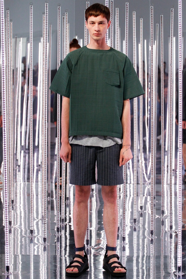 Sacai Man Spring/Summer 2015-Sacai Man designer Chitose Abe offered up a fun youthful collection for spring/summer 2015. Embracing boyish cuts and colors such as forest green, slim tailoring came together with an active edge. Pinstripe joggers and short tailored jackets were among oversized shirts, extended lightweight coats and bomber jackets. Plaid and stripes were also embraced in the colorful lineup that fit right in with the overall season goal of relaxed wearable fashions.