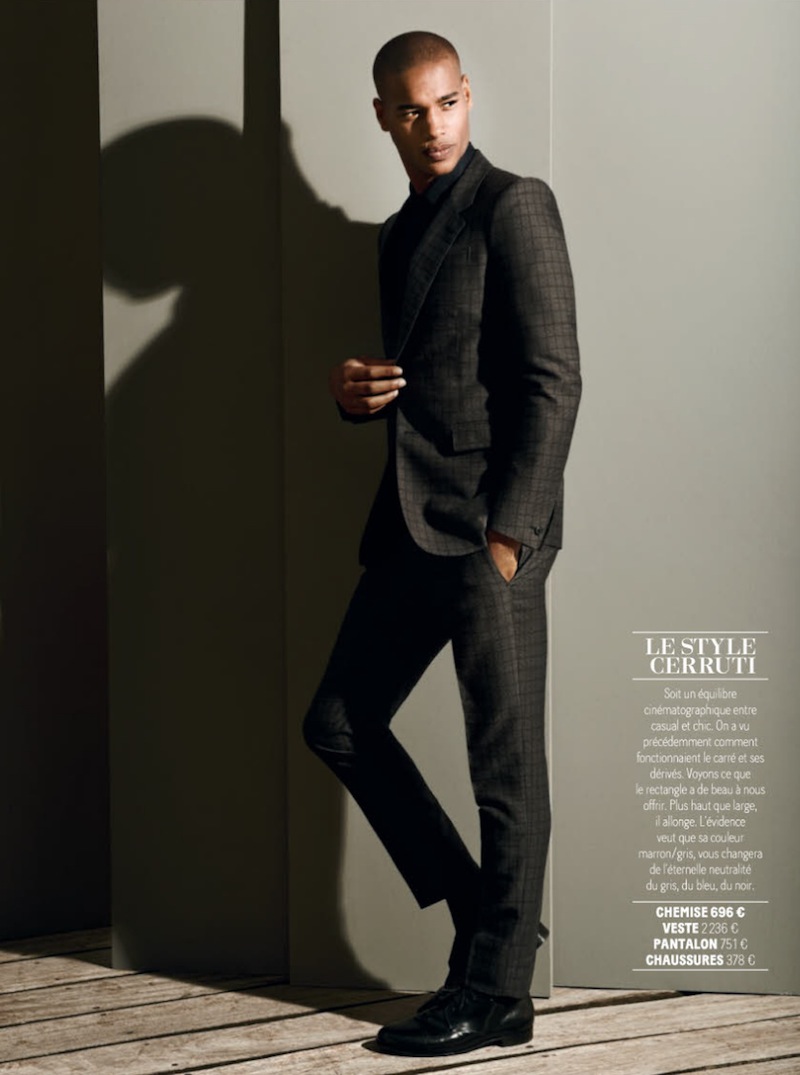 Find Your Style–The September issue of French GQ features a complete guide to fall fashion, lensed by Laurent Humbert. Stylist James Sleaford dresses Select models Sacha M’Baye, George Alsford and Morgan Watkins in a series of formal styles that also reveal an updated appeal. From Gucci’s checked sartorial blazers, Dior Homme’s rigorous silhouettes, to Giorgio Armani’s reinterpretation of the label’s signature Italian style, next season will surely be an ode to modern elegance. / Styling assistance by Alix Thomas. Hair by Frédéric Kebbabi.