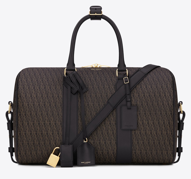 Saint Laurent Monogram Fantasy–Well, hello there. Saint Laurent has a new line in store for us. Saint Laurent creative director Hedi Slimane has designed a range, the Monogram Luggage and Accessories line of around thirty items for a luxurious complement to traveling. Created last year in Los Angeles by Slimane, the new range pays homage to the 1961 Yves Saint Laurent logo designed by artist Cassandre.