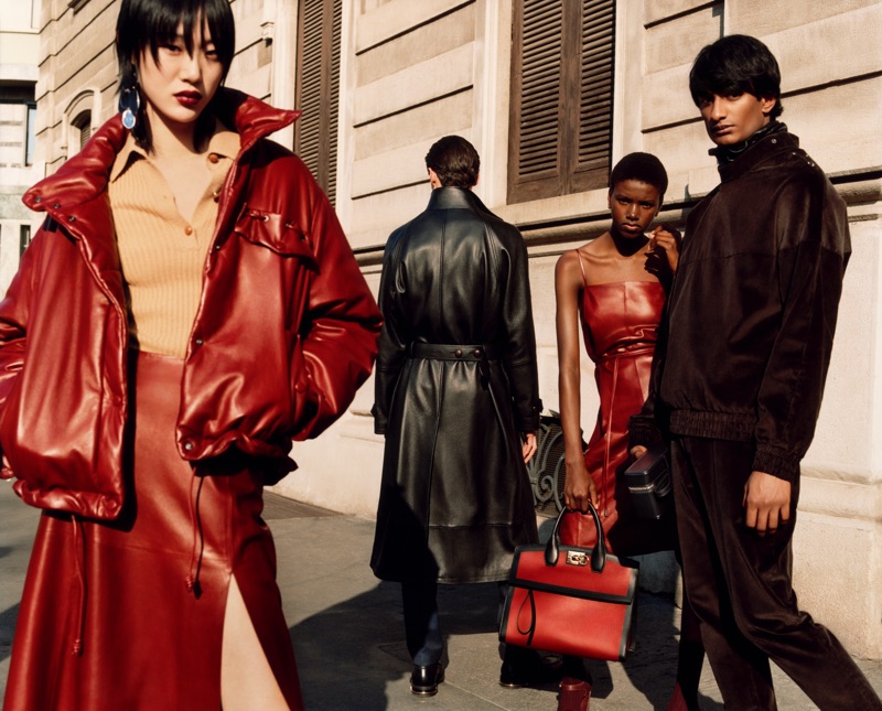 Salvatore Ferragamo’s “Patchwork of Characters” returns for the brand’s fall-winter 2019 campaign. Harley Weir photographs the outing once more, collaborating with the fashion brand’s artistic director, Paul Andrew. Taking to the streets of Milan, models Liya Kebede, Kirsty Hume, Yorgelis Mars, Sora Choi, Jonas Mason, Rishi Robin, and Hero Fiennes-Tiffin front the season. Jodie Barnes styles the models in Salvatore Ferragamo’s richly colored fashions that benefit from an autumnal theme.