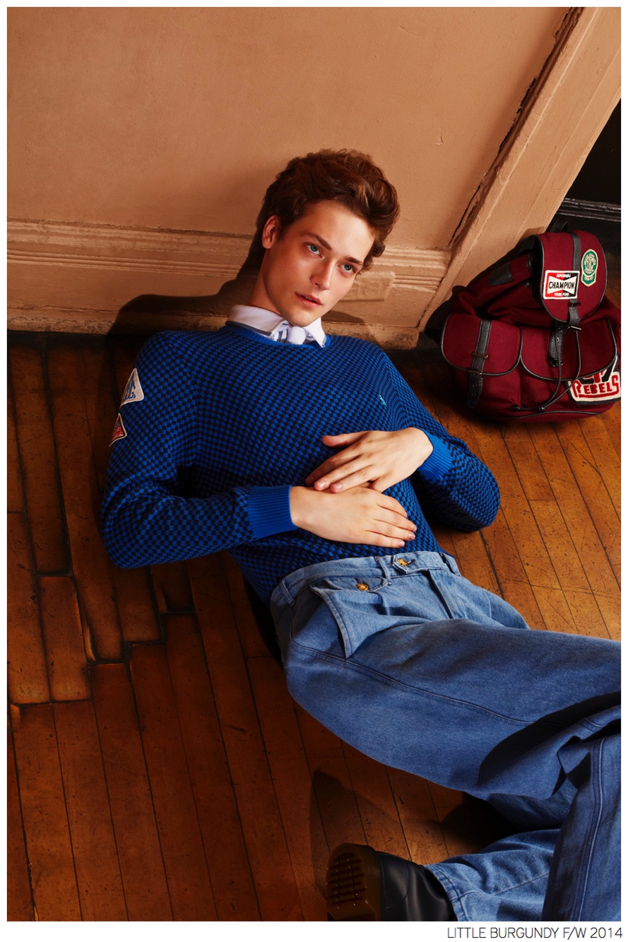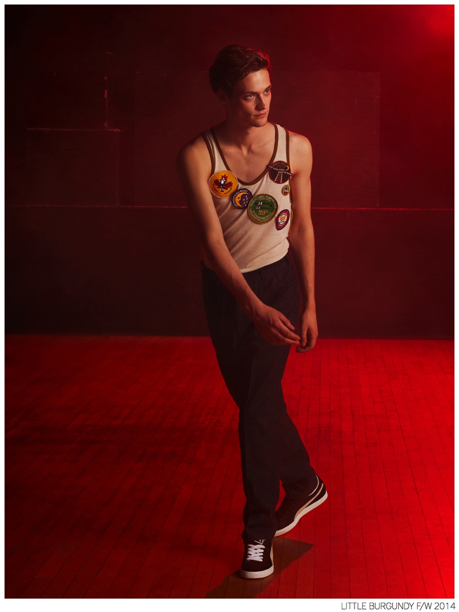 Little Burgundy Fall 2014-Photographers Saty + Pratha reunite with Little Burgundy for its fall/winter 2014 advertising campaign featuring model Sam Freedburg. Inspired by Northern Soul, the late 1960s dance movement, Sam is styled with a spirited nostalgia by Chad Burton. Paired with hi-tops, trainers and oxfords, Sam keeps it casual in bomber jackets, colorful trousers, printed shirts and other menswear standbys. / Grooming by Cody Alain. Props styled by Jennifer East.