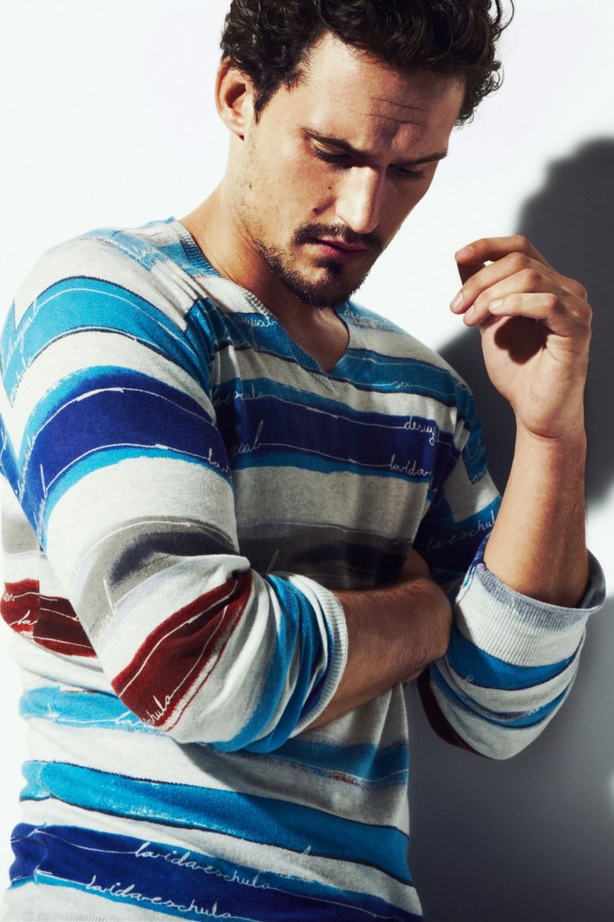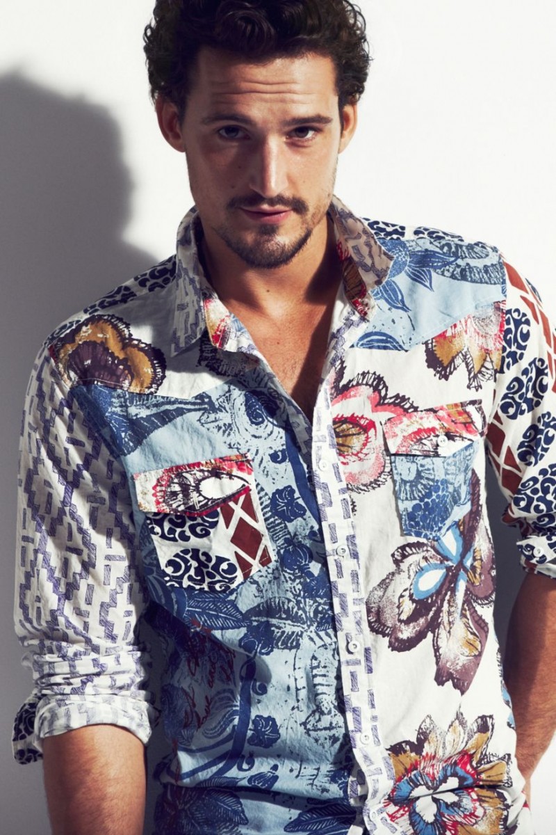 Colors, Please!–Enlisted by Spanish label Desigual to appear in its spring/summer 2013 lookbook, British model Sam Webb definitely fits with the lively and cheerful mood of the brand. For summer 2013, Desigual’s offering plays in fact with its signature mixture of colors and prints, finding inspiration in graphic patterns, like stripes, vintage American icons or exotic floral motifs, that decorate shirts, tees and knits. Washed jeans, woven belts and printed Bermuda shorts complete the ideal summer wardrobe, adding a playful mood to every guy’s style, thanks to a massive dose of color.