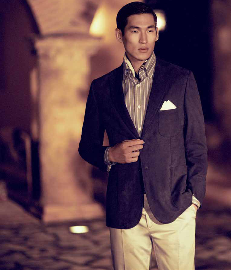 A New Direction–Italian label Brioni enlists models Sam Webb, Maximiliano Patane and Jae Yoo to grace the pages of its spring/summer 2013 lookbook, shot in an evocative Italian landscape. Dressed with the latest offering of the brand, designed by the newly appointed creative director, designer Jason Basmajian, the models look impeccable in a series of numbers that highlight Brioni’s signature tailoring appeal, adding to it a more playful and younger twist, thanks to bold and bright colors. Impeccable two-piece suits, casual numbers and glamorous tuxedos create a collection that focuses the attention on conquering new young customers that love to get dressed in a contemporary way, that at the same time doesn’t forget a strong sense of traditional tailoring.