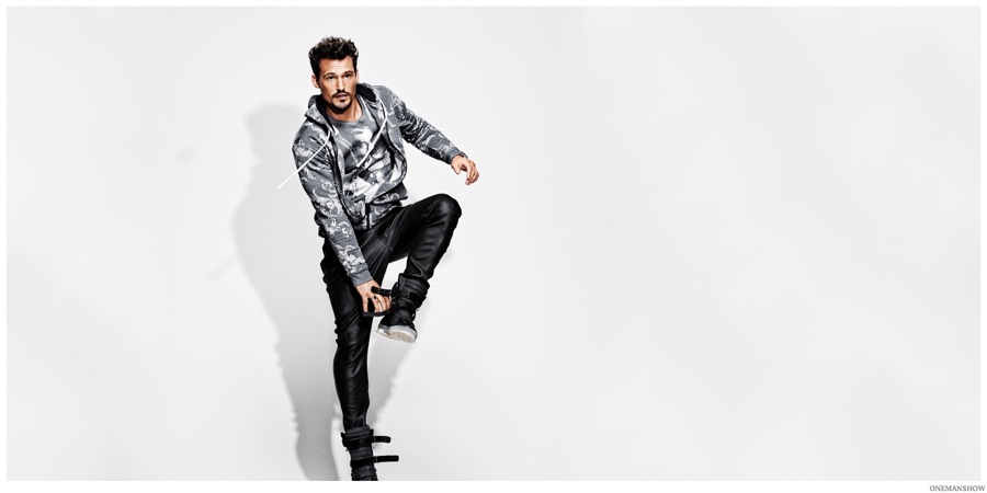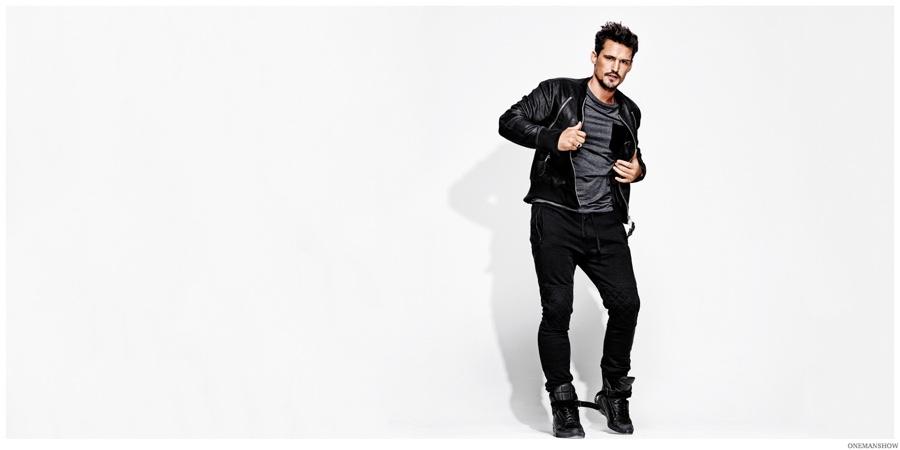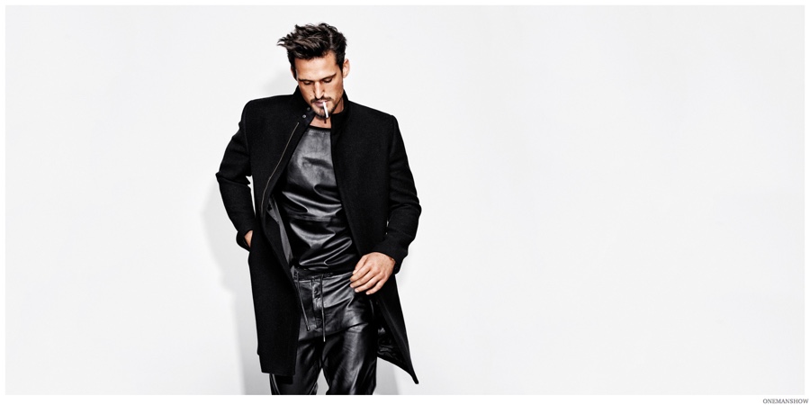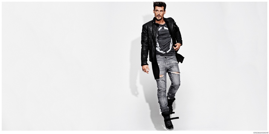 British model Sam Webb delivers quite the modern attitude as he connects with Onemanshow in its winter collection. Captured in the studio, Sam delivers a certain ease as the fashion brand’s man of the hour. Wearing distressed, ripped denim jeans, graphic t-shirts, leather jackets, knitwear and more, Sam models a contemporary wardrobe with many pieces worthy of clothing lust.