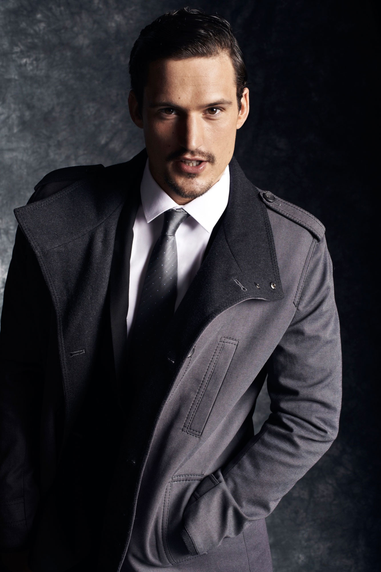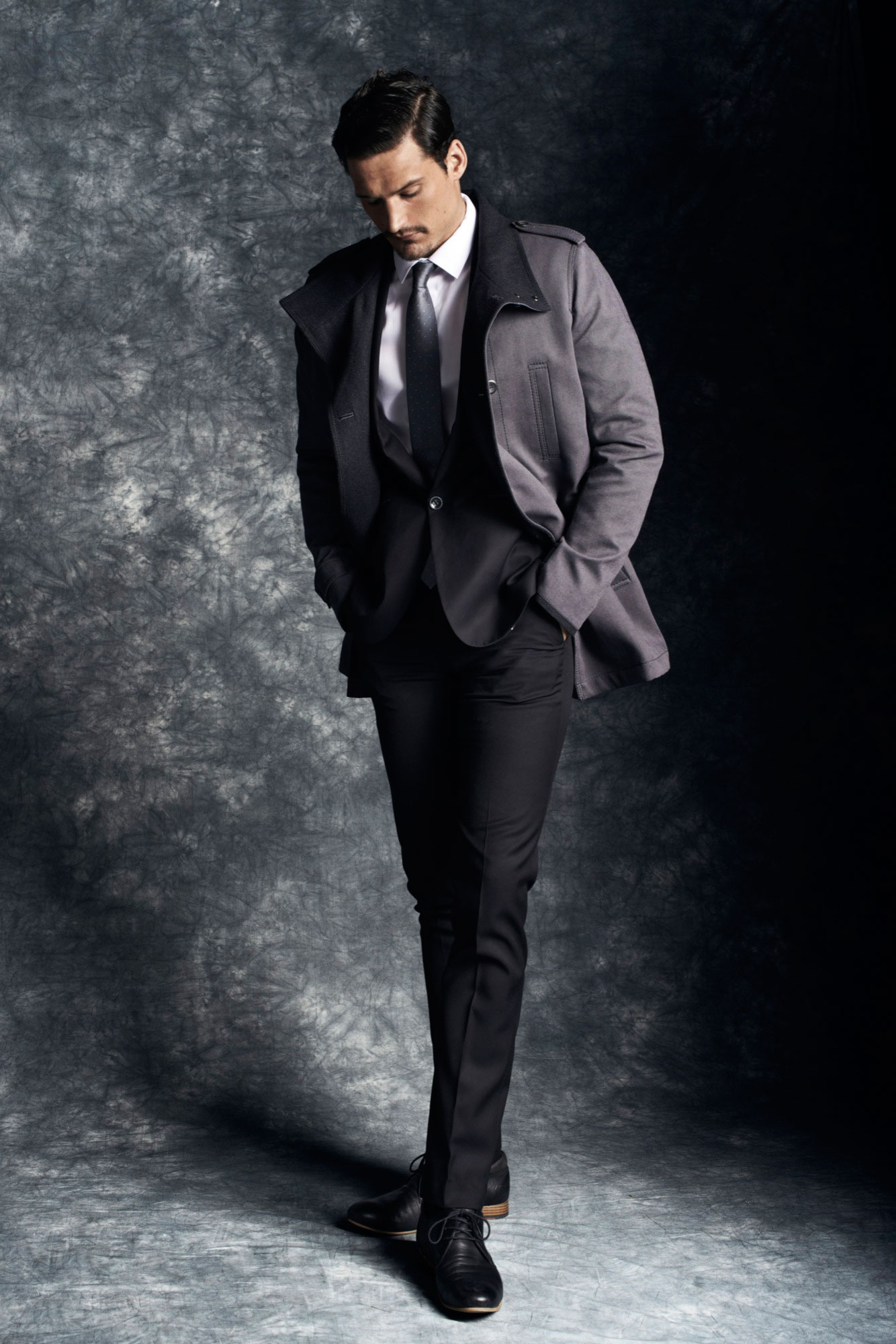 Just Elegant–Enlisted by Polish label Reserved to star in their fall/winter 2013 lookbook, British model Sam Webb shows us how to wear next season’s formal styles without looking ordinary and out of fashion. Decked out in tailored two-piece suits in classic black or medium grey tones, the Birmingham-born model completes his formal looks with crisp white cotton shirts, luminous silk ties decorated with graphic micro patterns, black leather shoes and houndstooth scarves, while to fight against the cold winter weather, he opts for a structured jacket, a real standout piece from the brand’s fall offering.