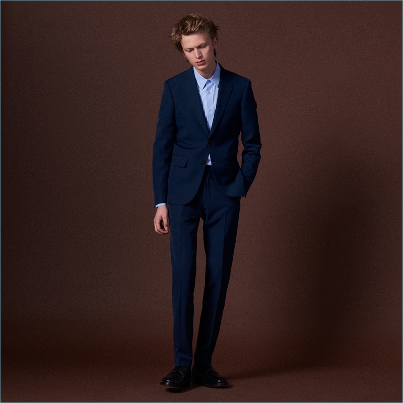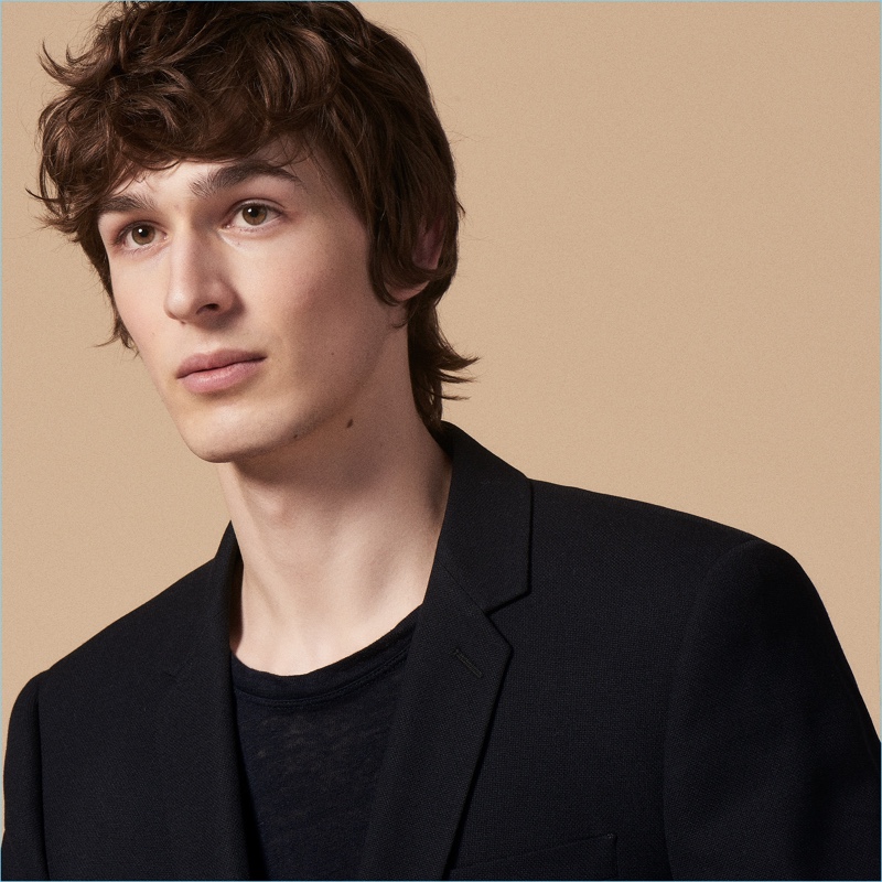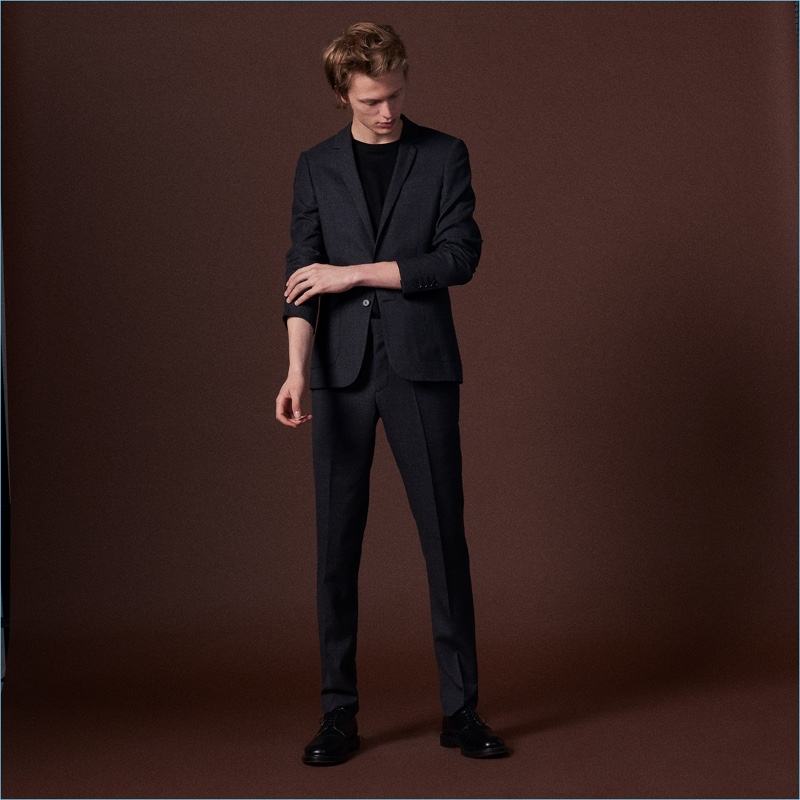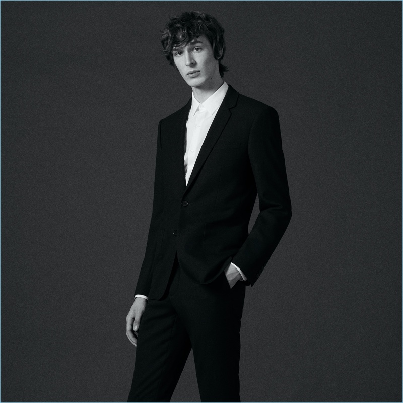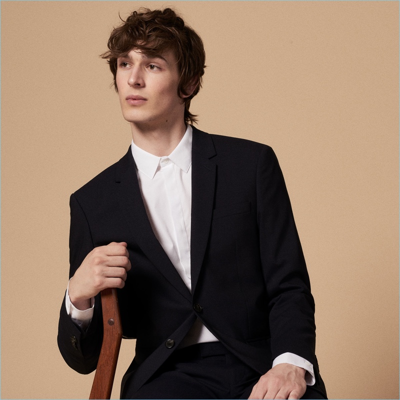 Luc Defont-Saviard dons a wool suit from Sandro.