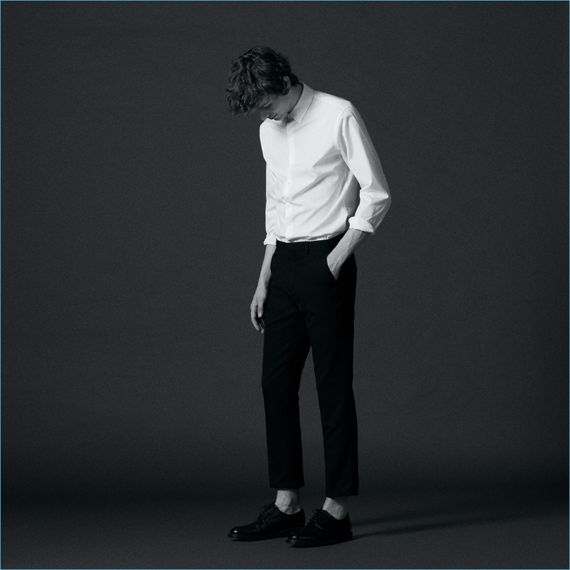 All smiles, Oscar Kindelan wears a slim-fit classic shirt from Sandro.Pin