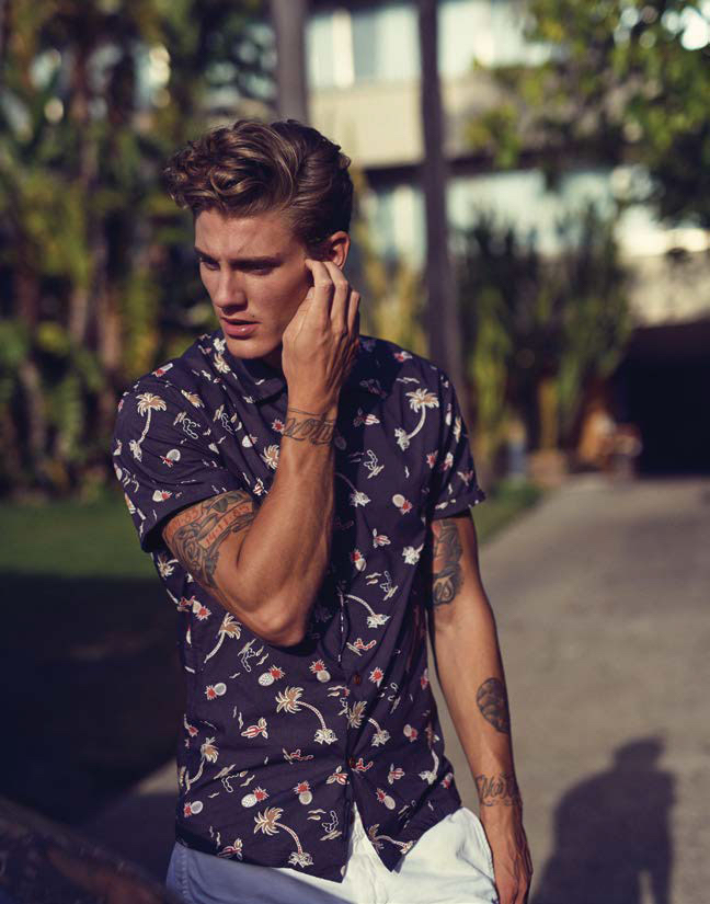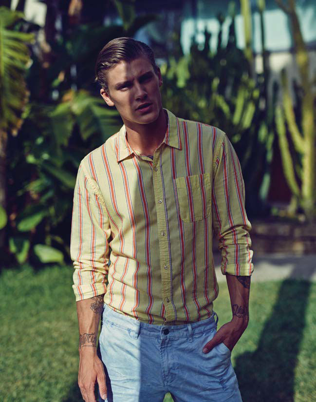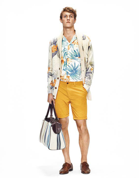 Scotch & Soda Spring/Summer 2015 Men’s Collection-Representative of a well-informed wardrobe, Scotch & Soda borrows from eclectic inspirations for the perfect, casual spring-summer 2015 collection. Showcasing the new styles with a lookbook featuring models Mikkel Jensen and Rutger Schoone, Scotch & Soda unveils a youthful lineup of ease. Fitted silhouettes carry a classic rock ‘n’ roll vibe, while the retro energy is continued with smart serparates that encompass a summer vacation. Tropical prints, polka dots and other design motifs dress shirts, shorts and pullovers. Completed with canvas shoes, statement tees and straw hats, Scotch & Soda achieves an inspiring seasonal outing.