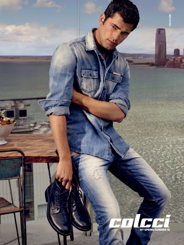 Following a behind the scenes look at Colcci’s latest campaign, we get the first image. American model Sean O’Pry reunites with the brand, donning a double-denim look. Posing for a photo in New York, Sean delivers a piercing gaze as he also shows off Colcci’s rugged boots.