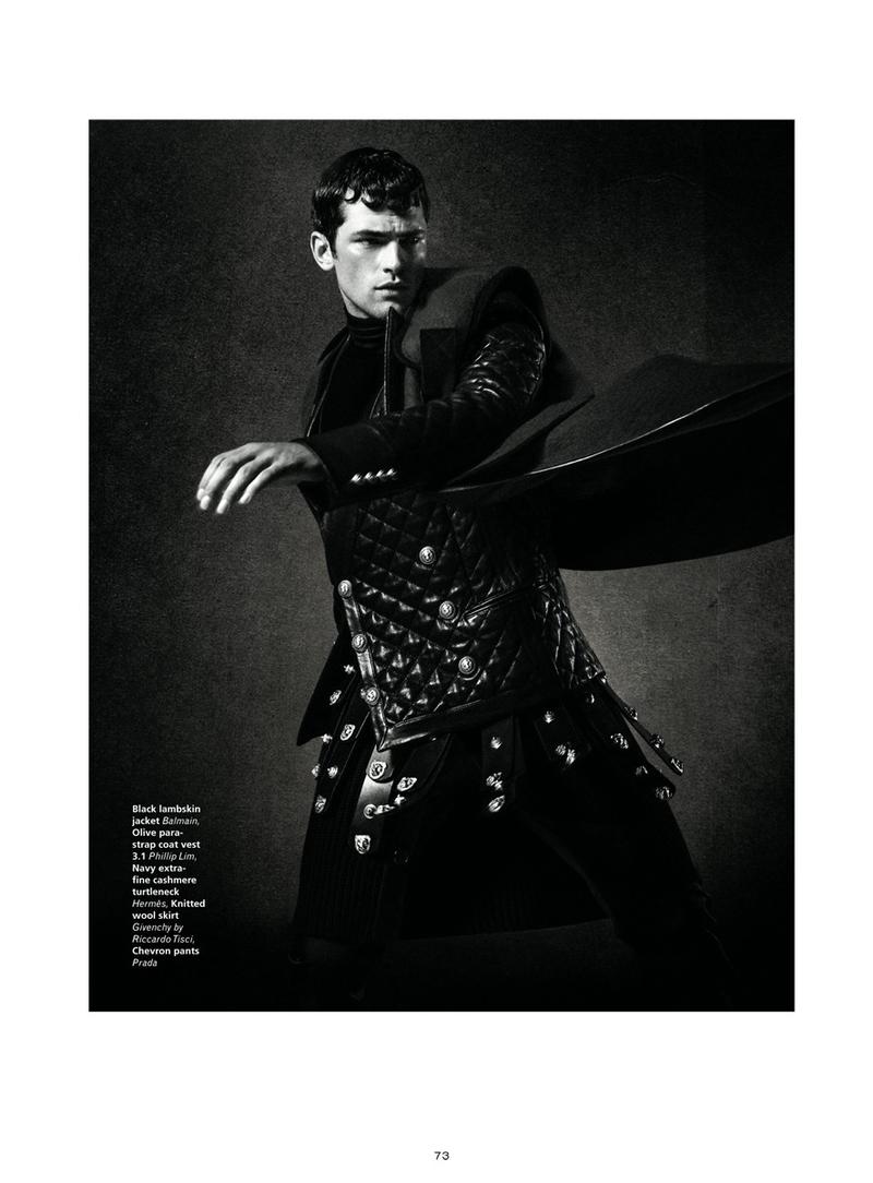 Sean O’Pry reunites with photographer Jack Waterlot following a 2013 Schön! story. This time around, Sean graces the pages of the most recent issue of L’Officiel Hommes Middle East. Taking a page from medieval times, the American model is an editorial knight as he links up with stylist Amy Mach. Complementing his armor with designer fashions, Sean is pictured in Salvatore Ferragamo, Balmain, Christopher Kane, Fendi and more.
