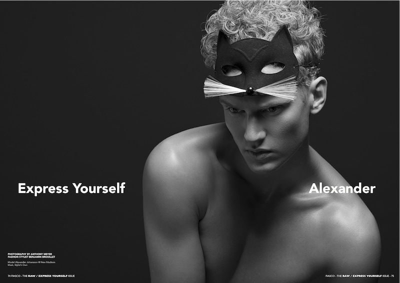 Express Yourself–For the thirteenth issue of Fiasco, Anthony Meyer shot an extended cover editorial featuring Sebastian Sauvé, Callum Wilson, Ash Stymest, Luke Worrall, Alexander Johansson, Isaac Carew, Jake Cooper, Frey Mudd, Humbert Clotet, Adrien Brunier, Jaco van den Hoven, Naleye Junior Dolmans, Keno Weidner, Arthur Olecki and Lyle Lodwick. Styled by Benjamin Brouillet, the fourteen-model shoot resulted in seven separate covers for the issue. / Assistant Photographer: Arnau Mallett. Assistant Stylist: Charin Chong. Hair Stylist: Robin Navarro Harraga. Make Up Artist: Jacques Uzzardi using Mac Cosmetics. Assistant Make Up Artist: Sabrina Salza. Retoucher: Sebastian Bar.