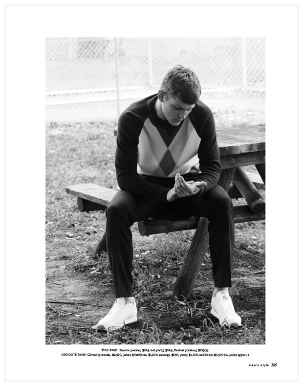 Covering Lab-A4 for the Modern Issue, Sebastian Sauve is photographed by Max Doyle. Starring in a spring story called Shade On, Sebastian dons the latest fashions. Mixing casual and formal styles, the spread is influenced by a Fifty Shades of Grey S&M reference.