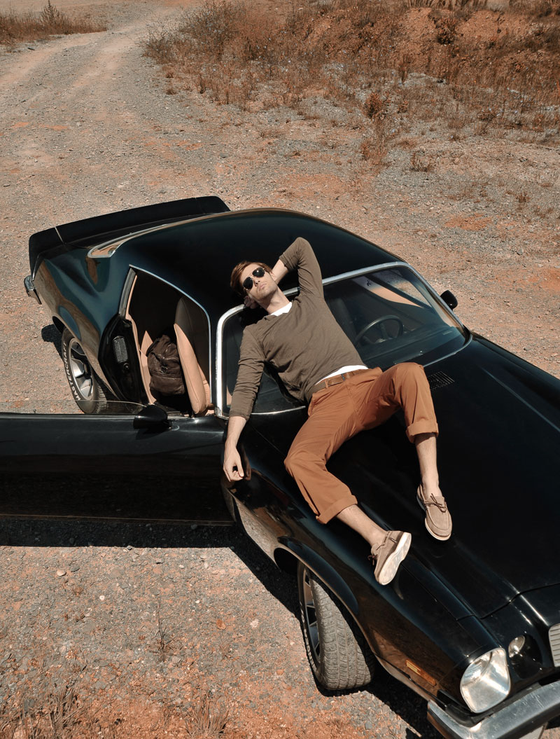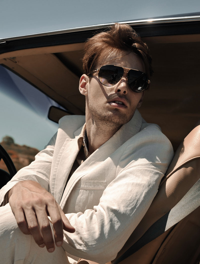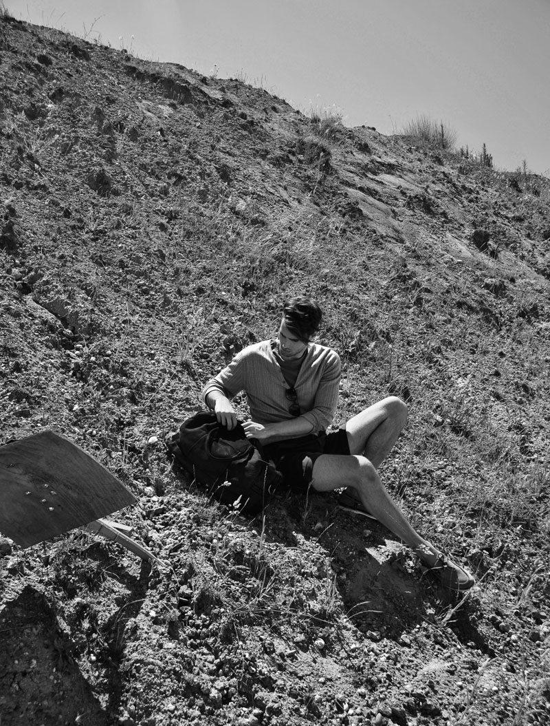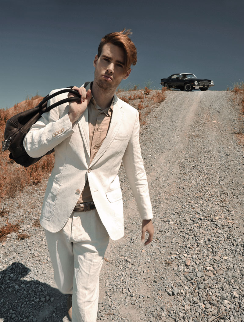 On The Road–Photographer Ersoy Alap reunites with stylist Duygu Altıparmak to capture Independent Men model Sebastian Schlüter for the August 2012 issue of Esquire Turkey. Heading to a desert set, Sebastian is lensed in a series of relaxed and contemplative images, showcasing an array of stylish looks. From neutral suits to lightweight sweaters and basic tees, Sebastian is an effortless vision of casual style.