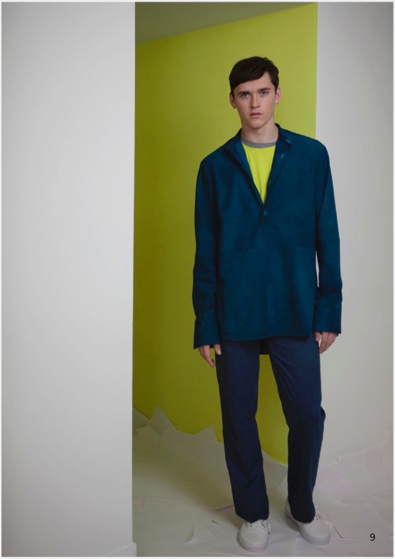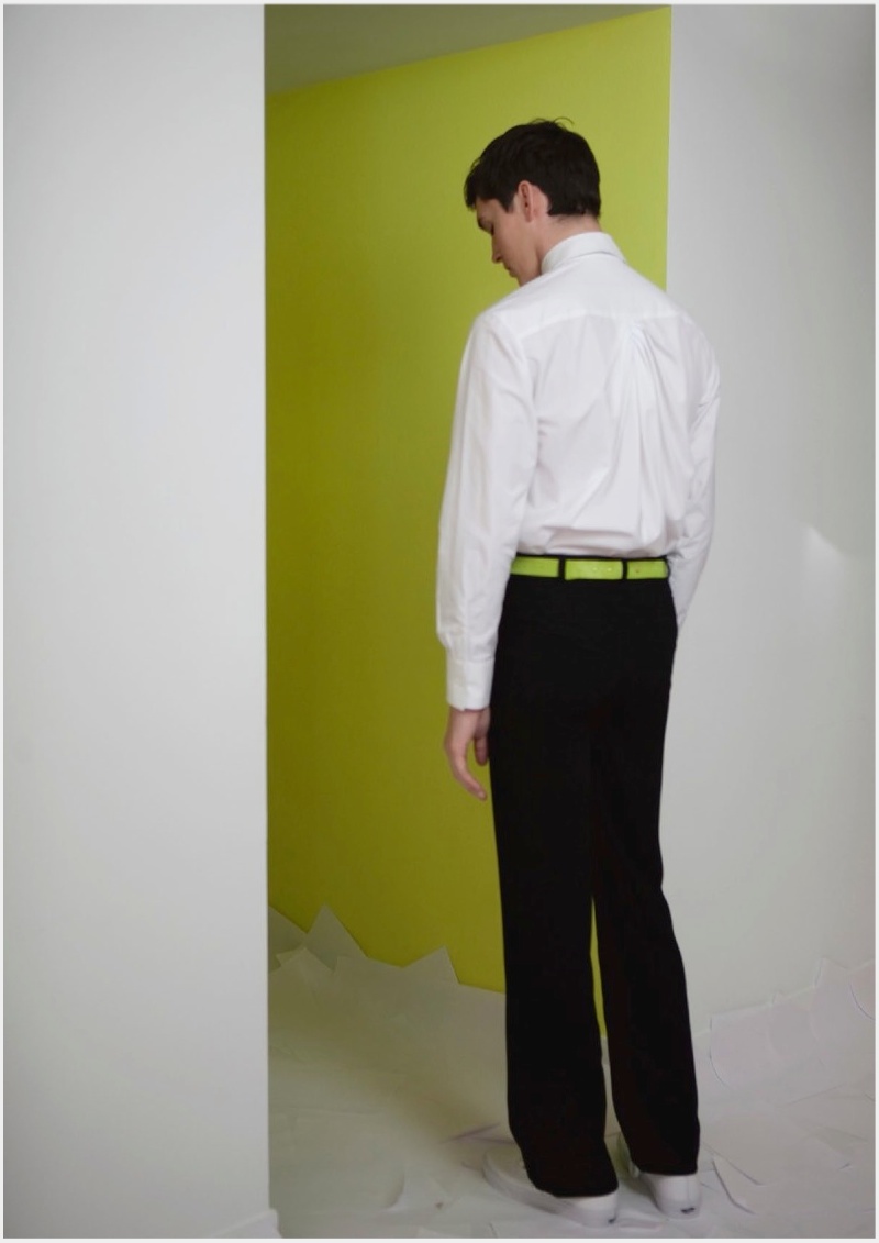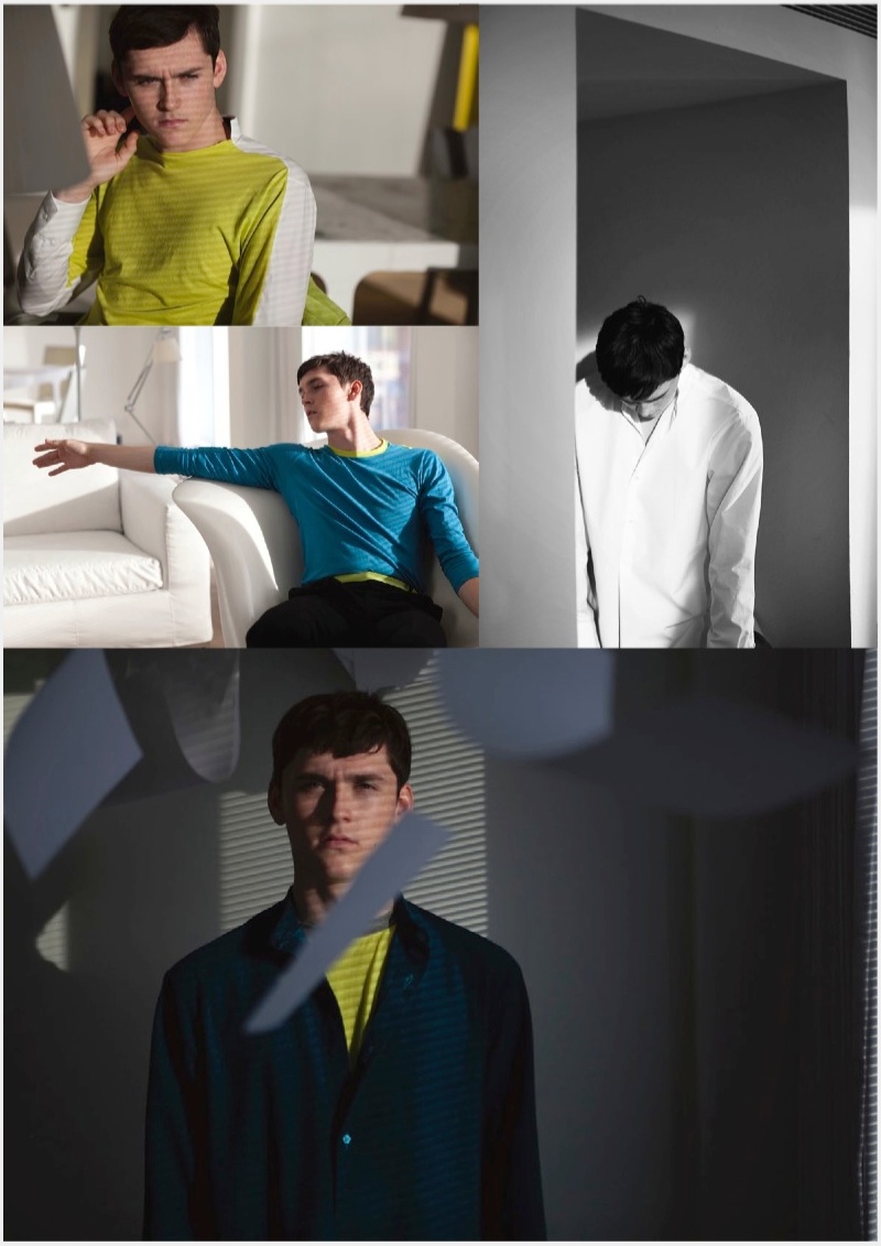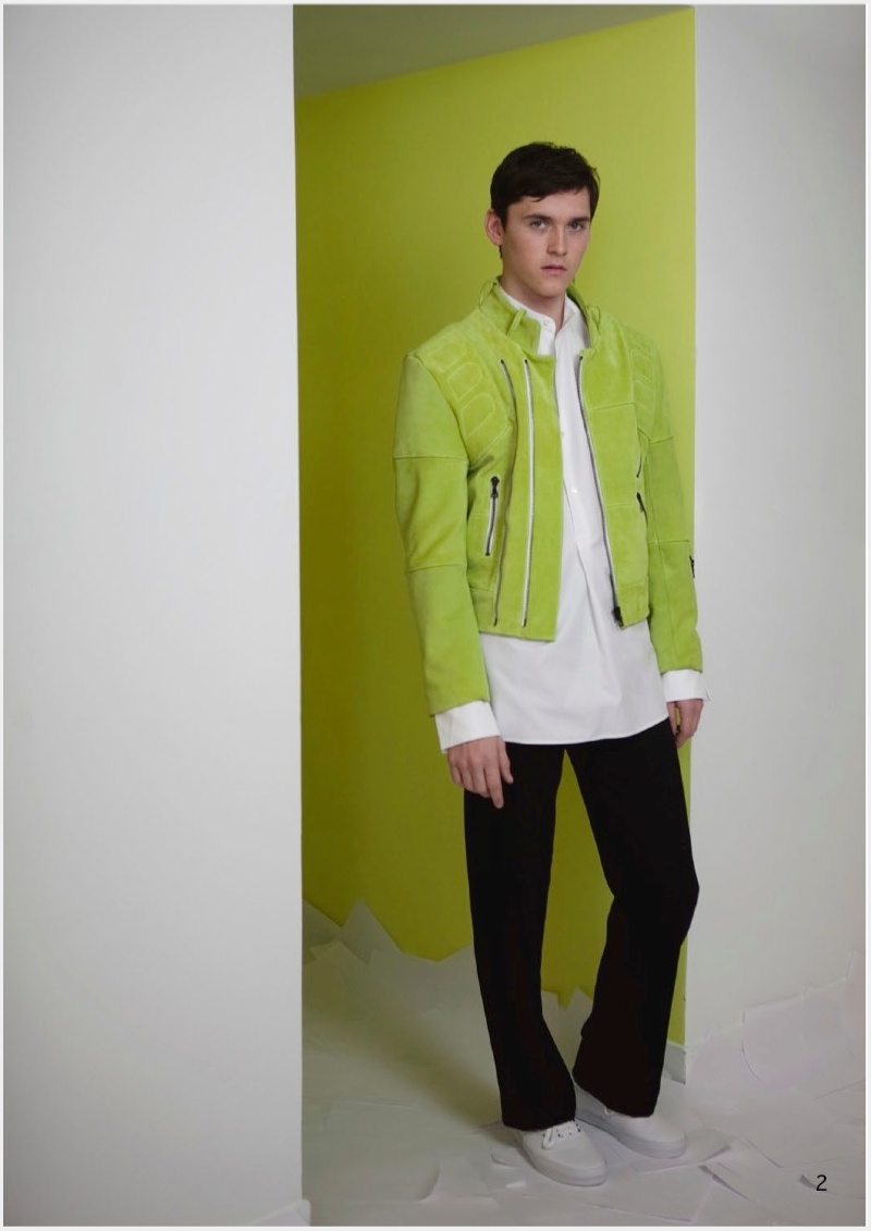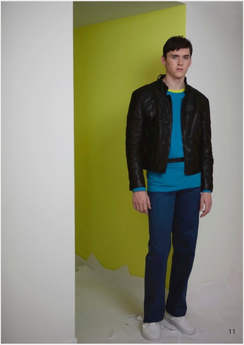 Palmer//Harding Fall/Winter 2014–Allowing the music to course throughout his body, model Anders Hayward dances his way through Palmer//Harding’s fall/winter 2014 outing. Photographed by Cecilie Harris, Anders dons the label’s latest collection which explores movement and comfort as the result of embracing the ease of a simple t-shirt. Dressed in bright colors, Palmer//Harding makes an upbeat statement as the range maintains relaxed silhouettes with a lineup of shirts and trousers, complemented by a biker jacket in suede and cow hide.