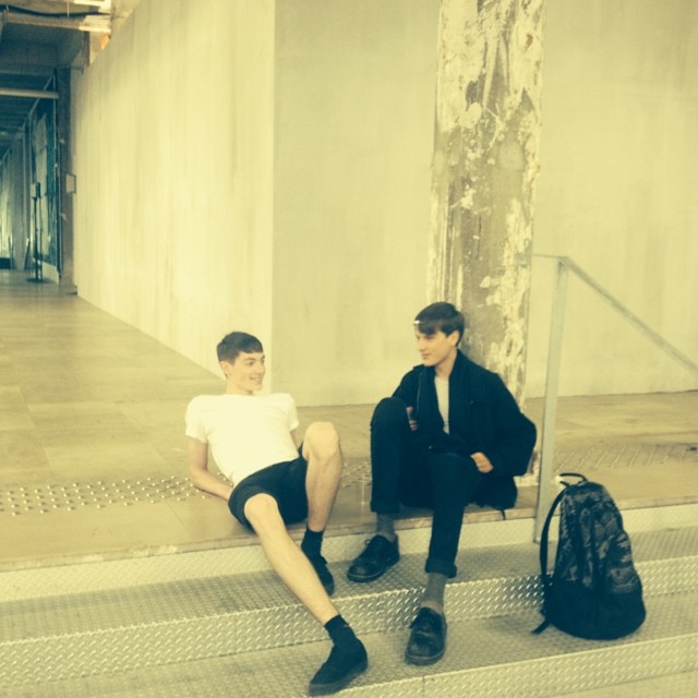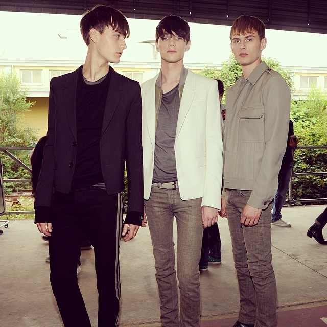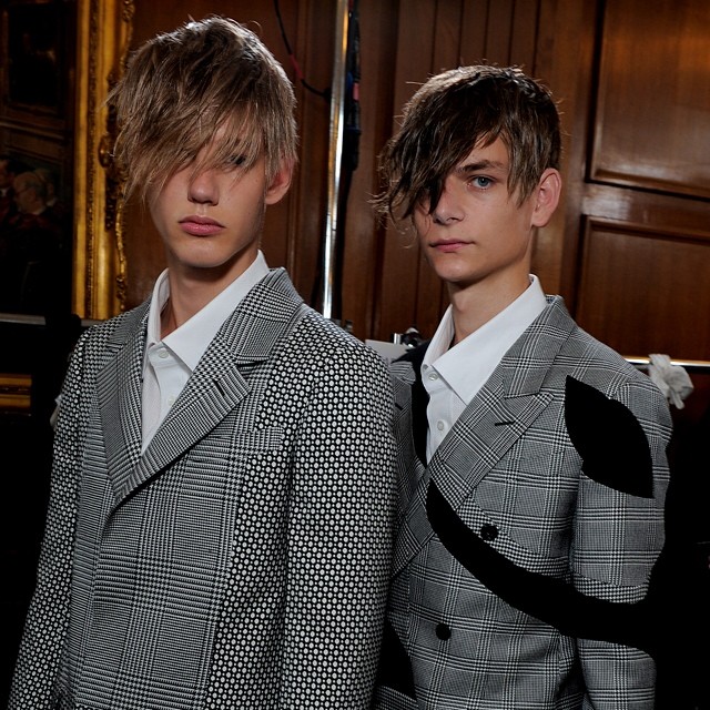 Models Janis Ancens and Clement Chabernaud behind the scenes at Gucci's show.Pin