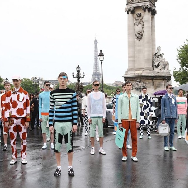 Models head out on a rainy day for Kenzo's spring 2015 show.Pin