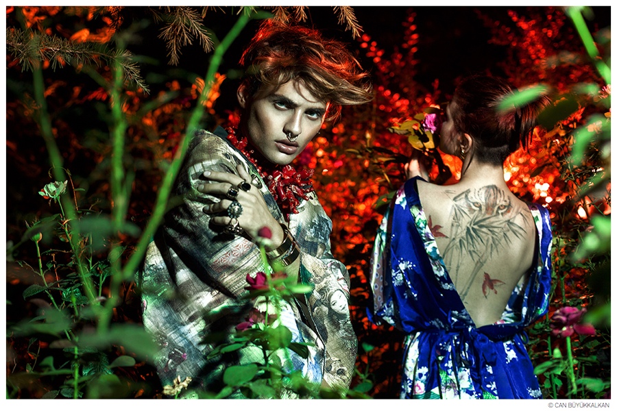 Secret Garden-Shooting a new story, photographer Can Büyükkalkan unveils stunning images of model Semih Metin Demirkan. Posing for a series of dramatic editorial photos, Semih is captured in intricate prints and fashion-forward pieces from the likes of Zara, styled by Sammy. / Makeup by Melis Yılmaz.