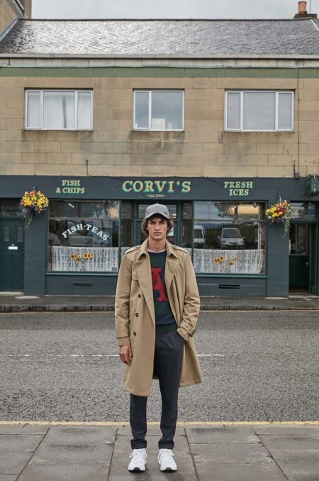 Sfera travels to Scotland to visit Corvi’s for its fall 2019 campaign. Coming together, models Francisco Henriques and Max Barczak look forward to the iconic restaurant’s fish and chips. The pair also showcases Sfera’s latest fashions for the season. Preppy style is front and center for the occasion. Sfera’s wardrobe includes classic pieces that range from a brown duffle coat and checked trousers to a cardigan sweater. Max and Francisco sport standouts such as a trench coat and v-neck sweater as well.