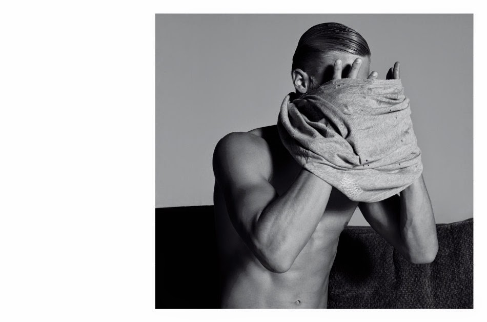 Shades of Grey–Reconnecting with photographer Milan Vukmirovic after a prior shoot, Clark Bockelman joins fellow model Axel Jonsson for Shades of Grey. Shot for Vukmirovic’s vanity project, Fashion for Men, Clarke and Axel pose for quite the photos as they act as model muses, getting captured from every angle in a simple grey wardrobe.