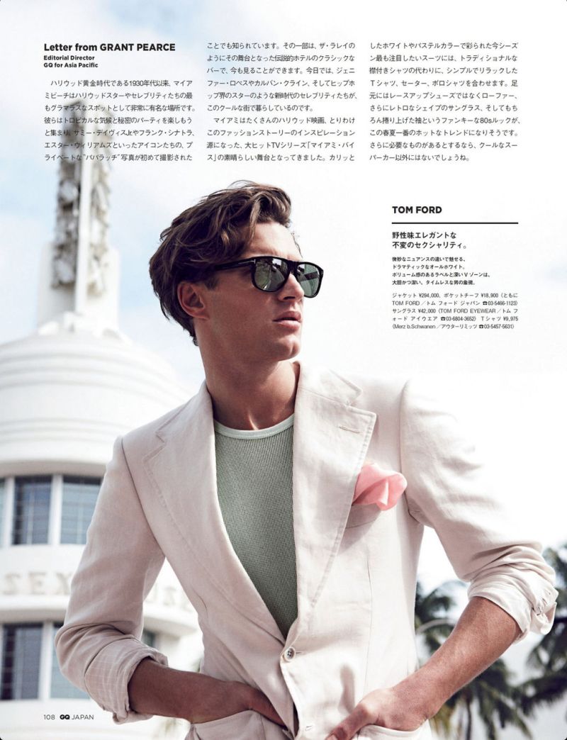 Miami Vice–South African model Shaun DeWet hits Miami for a retro-inspired spread for the latest edition of GQ Japan. Photographed by Arnaldo Anaya-Lucca with styling by Jacky Tam, Shaun is ready for a relaxed spring season in suiting looks from Brioni, Alexander McQueen and more.