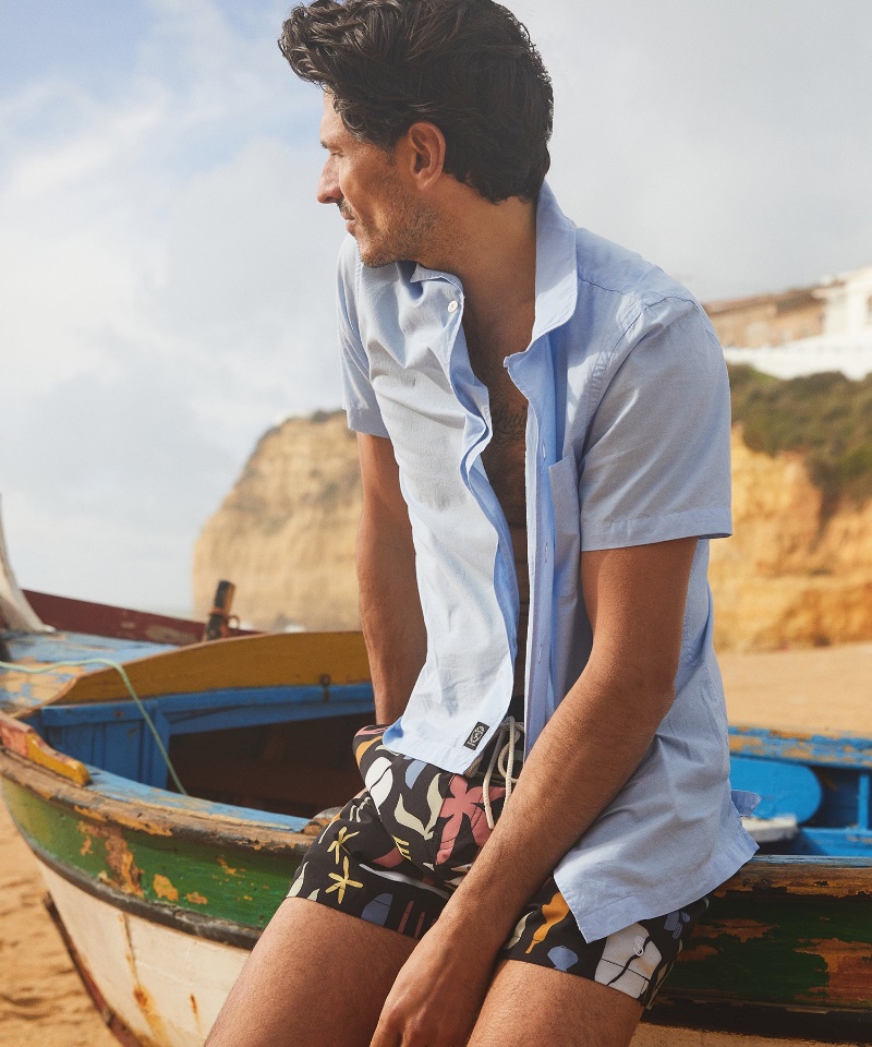 In a stylish journey to Carvoeiro, Portugal, Todd Snyder unveils its newest styles from its spring 2023 collection, enlisting the talents of the dashing actor and model Andres Velencoso. This beautiful coastal town, with its mesmerizing cliffs, coves, and azure waters, sets the stage for an unforgettable fashion experience. The charming whitewashed buildings adorned with terracotta roofs perfectly complement the brand’s newest offerings.