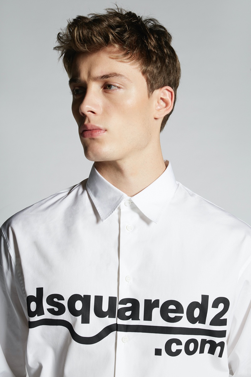 PinDsquared2 Garment Dyed Acid Sexy Mercury Jeans in Pink: Dsquared2 has always been unafraid to defy conventions when it comes to design. João Knorr rocks a pair of the brand’s jeans that is proof that they know how to push boundaries.PinDsquared2 Caten Bros Crewneck Sweatshirt: Add this sweatshirt, as worn by Tommaso Bellini, to your closet, and your look will get an instant upgrade. It’s a classic given the signature Dsquared2 treatment.PinDsquared2 Nylon United Polo Shirt: David Trulik is geek chic in a fall look from Dsquared2. This fashion statement is again another good example of how the fashion brand can turn a classic piece of clothing into something extraordinary. Somehow, the print at the chest area makes all the difference.PinDsquared2.com Shirt: Who knew putting a URL on a white shirt would look cool? Dsquared2 knows. Hitting the studio, model João Knorr makes a loyal statement in Dan and Dean Caten’s Dsquared2.com shirt.