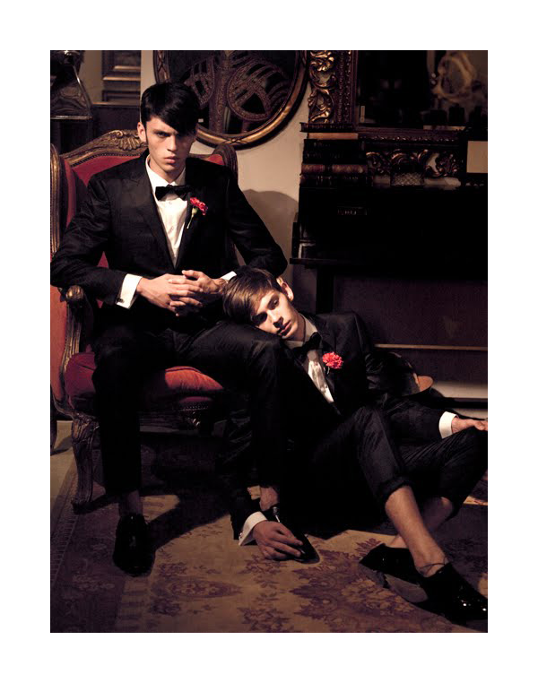 Allure models Silviu Tolu and Mike Scar enter a tumultuous love triangle for next month’s issue of Elle photographed by Tibi Clenci. Despite hints of aggression, the duo manage to portray the allure of gentlemen with the help of stylist Marian Palie.