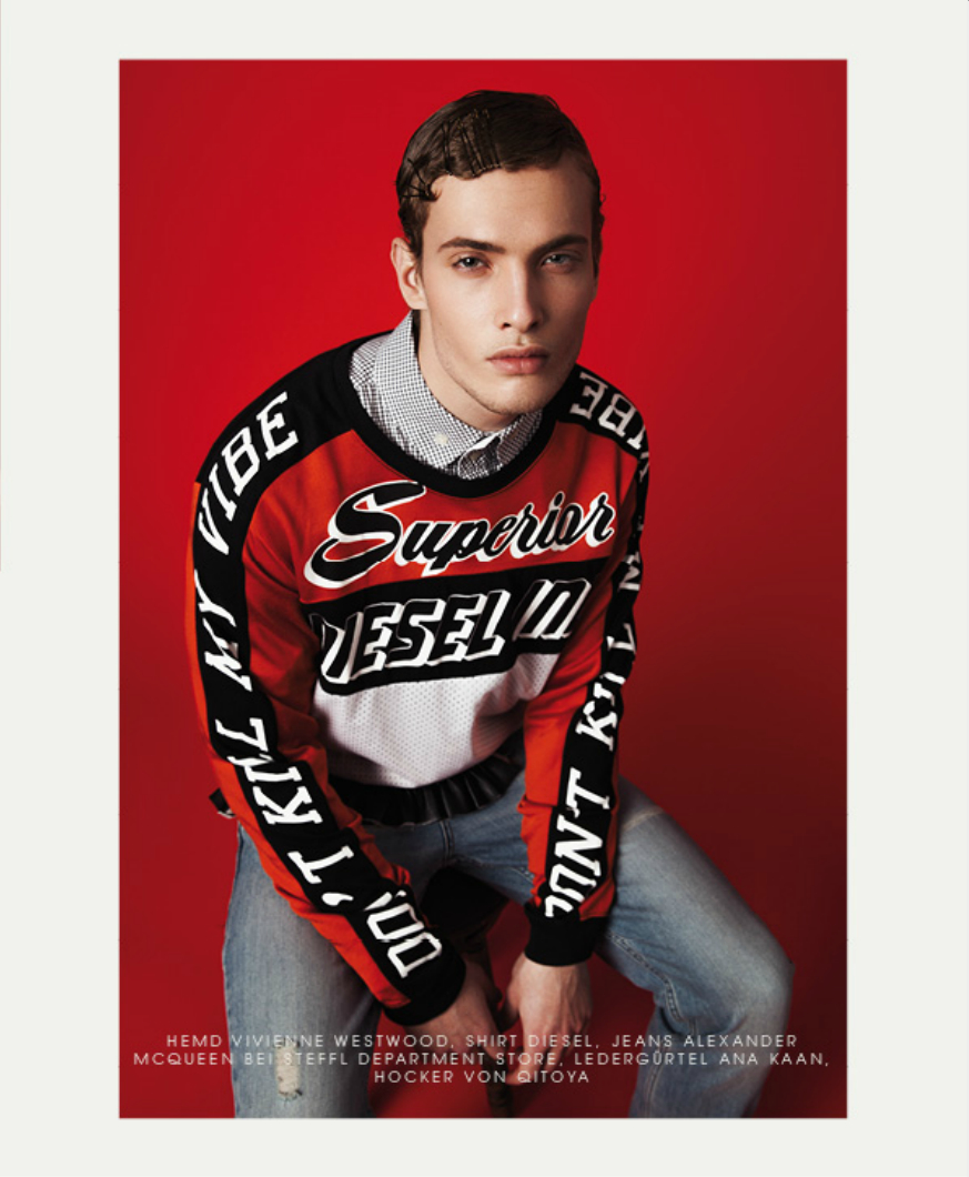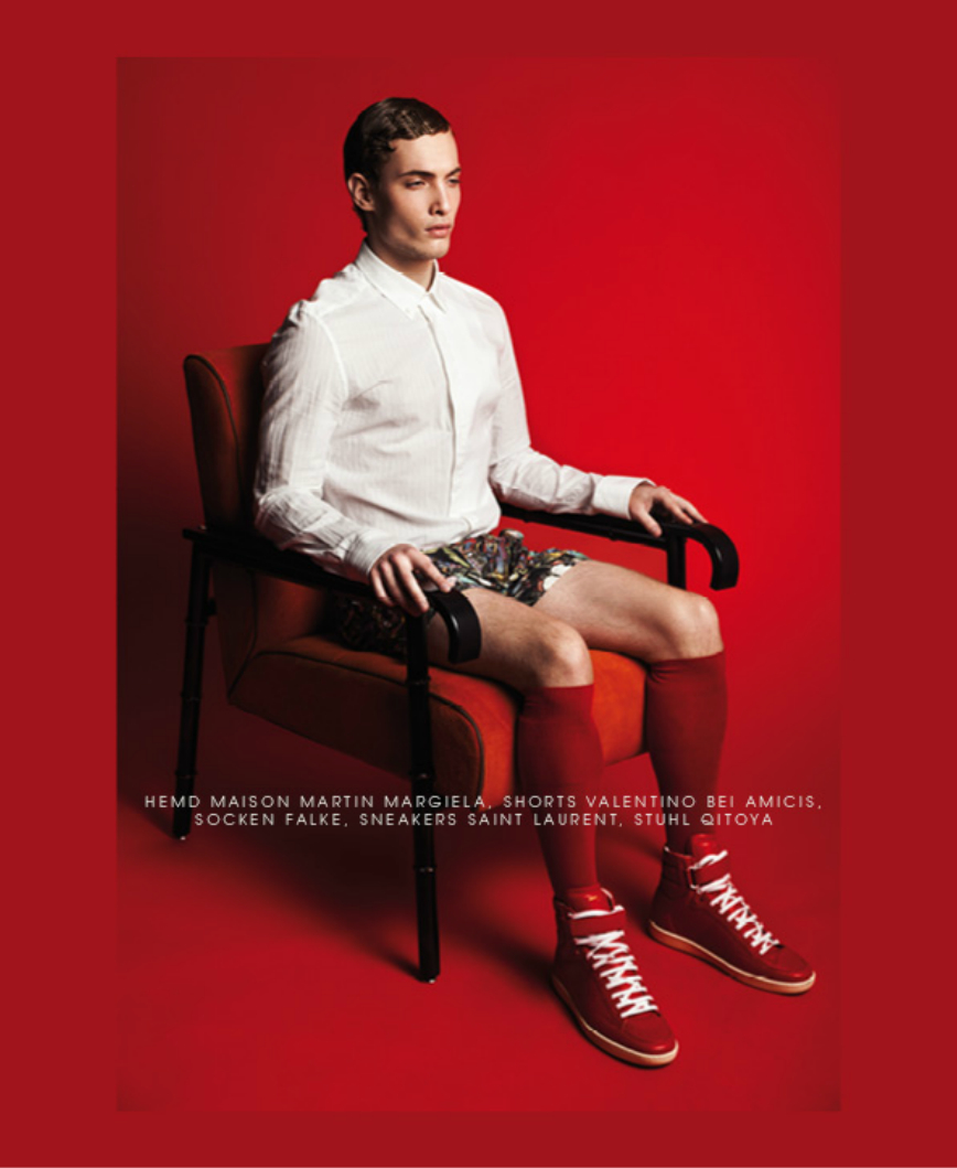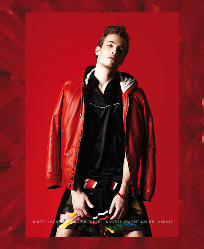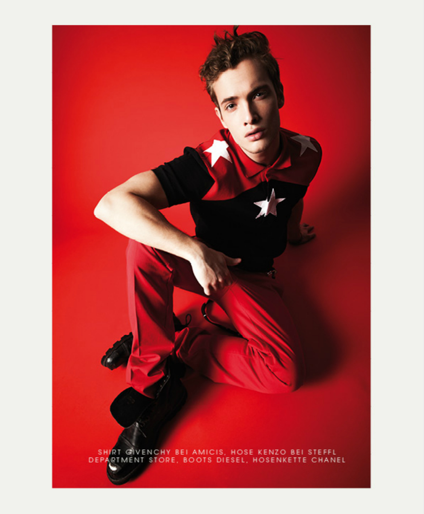 After a shoot with Verena Mandragora, we catch up with M Management model Simon Cellar as he covers the latest issue of Vangardist magazine. Photographed by Darius Lucaciu, Simon stars in a red-inspired theme shoot. Entering the red room, Simon is pictured in styles from Diesel, Givenchy and other brands.